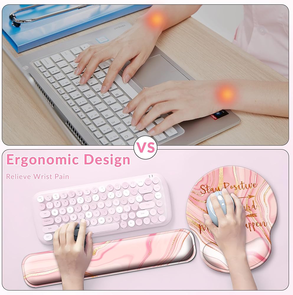 Ergonomic Design: The mouse pad and keyboard wrist rest is designed for providing soft support to reduce stress, fatigue and pain,the soft keyboard arm rest cushion can relieve your wrist pain and stress effectively,the mouse pads set is also a ideal product for who use computer for a long period.