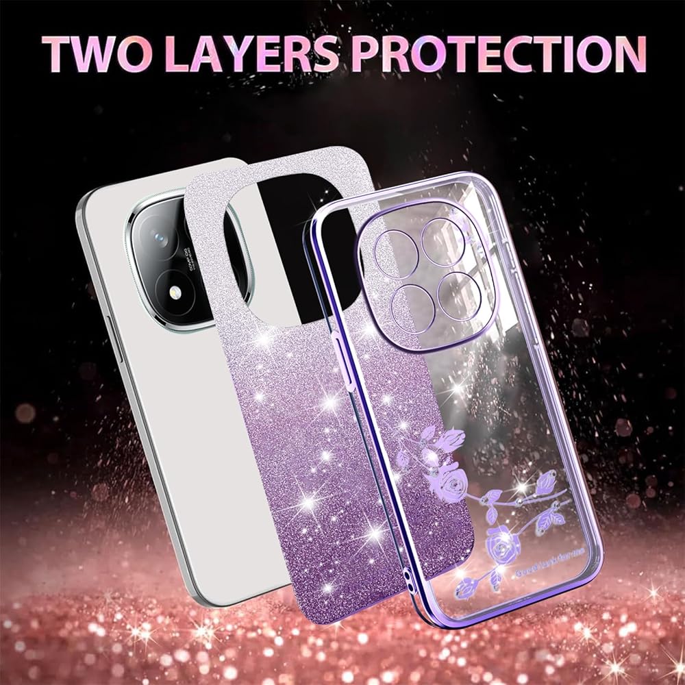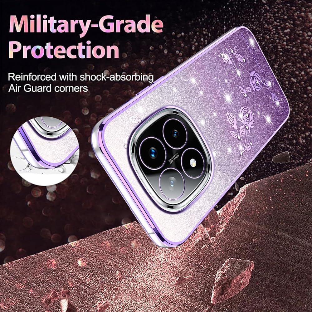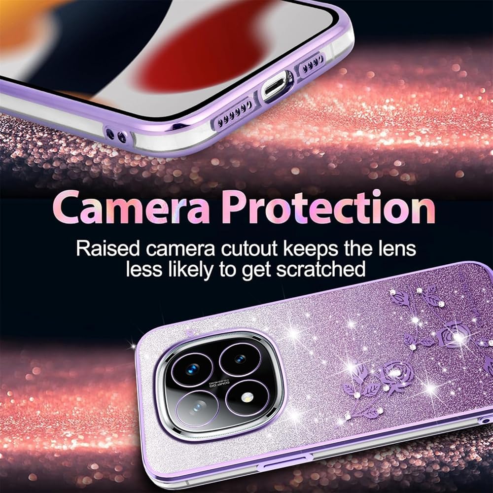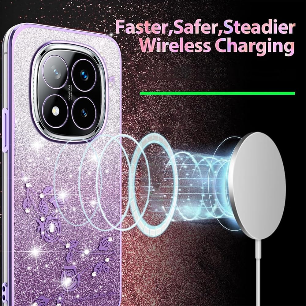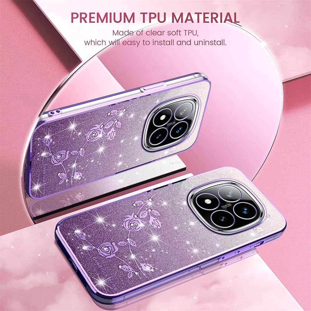 【Material & Protection】The glittery flowers case for Xiaomi Redmi Note 14 Pro Plus is made of high quality TPU material, soft thin and light, can protect your phone against shock, damages, dust and scratch