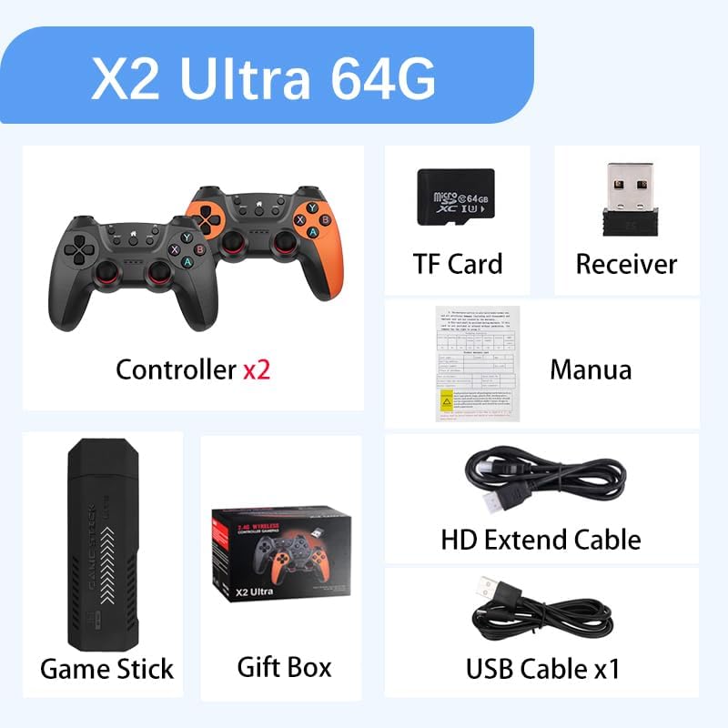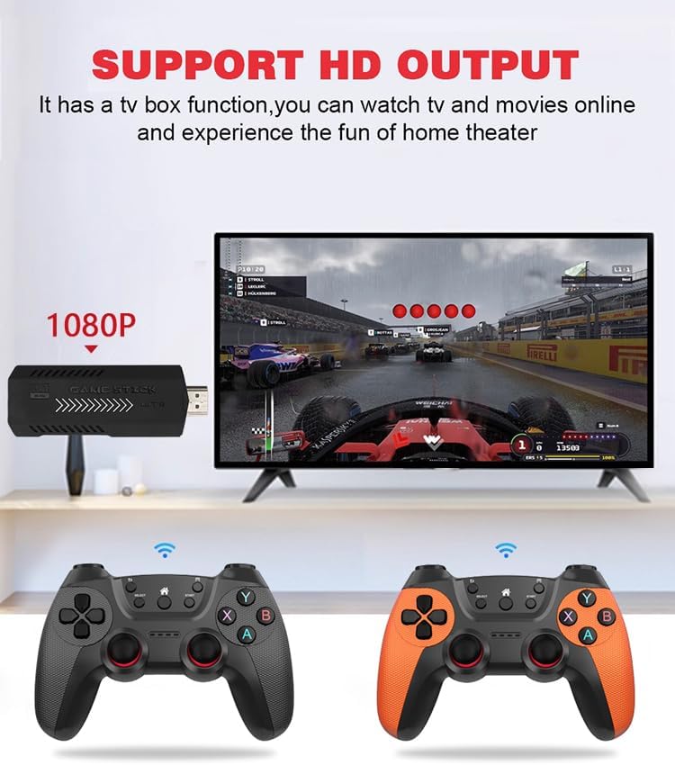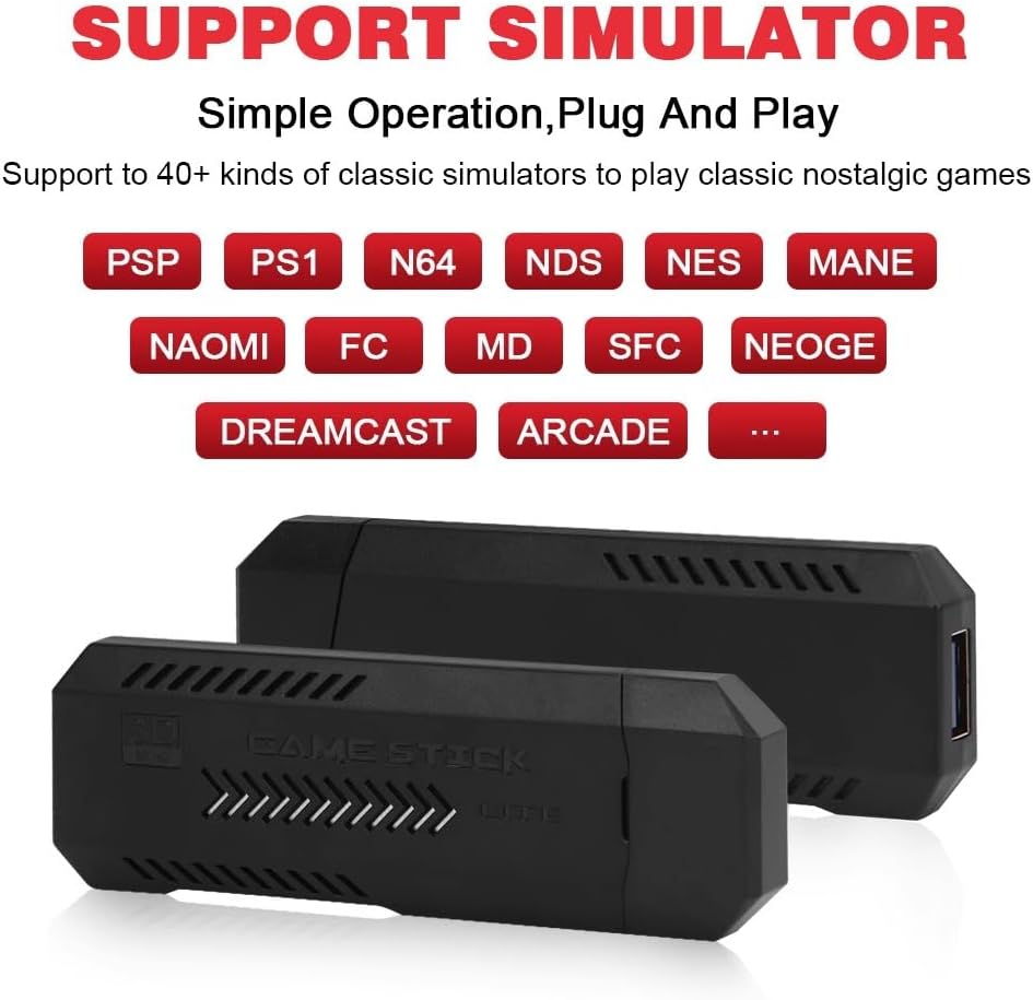 【Easy to Use 】No setup required. The steps are as follows: Connect the TV HD output; Use the USB data cable to connect to the power supply. When the game stick indicator lights up, it will automatically turn on and enter the game list interface; Turn on the power switch of the game controller, and then start playing games.