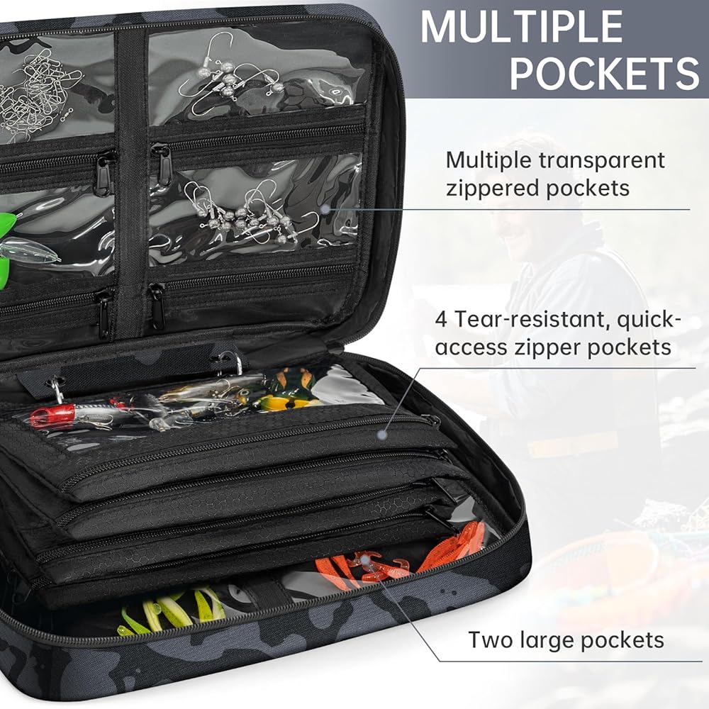 【Extra Large Internal Storage Space Design】LASUK Binder Bait Bag Front and Back Cover Design - (4) small and (2) large transparent internal zipper pockets give you extra large storage space. Binder Area Design - (2) transparent zipper sleeves and (2) double pocket transparent zipper sleeves