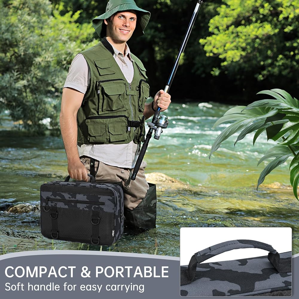 【Sturdy Waterproof Material】LASU bait bag is made of sturdy 600D waterproof and tear-resistant material for excellent long-term performance and reliability. The hydrophobic coating prevents external moisture from entering, and the internal PVC layer provides additional protection to ensure that your fishing gear is protected from the influence of bad weather