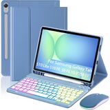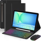 Case with Keyboard Mouse for Samsung Galaxy Tab S10 Lite/S10 FE 5G/S9 FE 10.9 Inch/S9 11 Inch,7 Color Rainbow Backlit Detachable USB-C Keypad Magnetic Cover with Pencil Holder Black