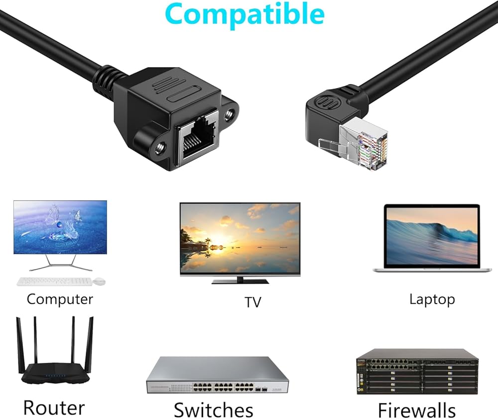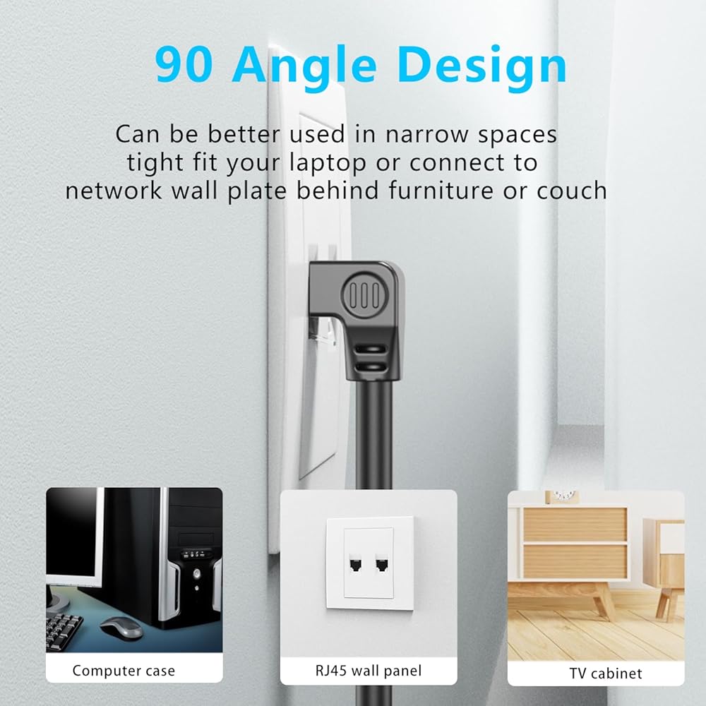 Wide Application: Short 90 Degree RJ45 Ethernet Cable connects with any LAN network components such as PCs, Laptops, computer servers, printers, routers, switch boxes, network media players, NAS, VoIP phones, PoE devices, Hub, DSL, xBox, PS2, PS3, PS4 etc
