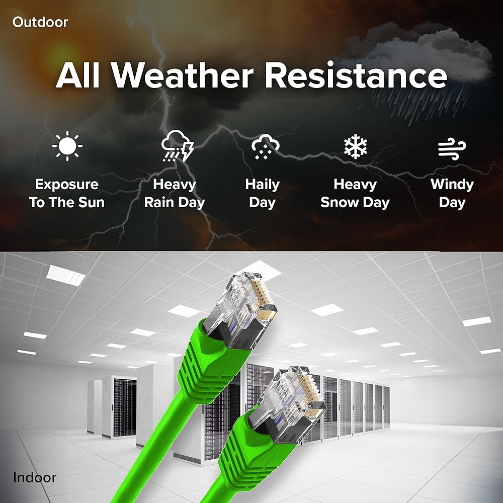 This Cat5e Ethernet patch cable is expertly designed for superior performance, delivering high-speed data transfer for all your networking needs, whether for gaming, computers, printers, or other devices. With 100% bare copper conductors, it ensures excellent conductivity and minimal signal loss, offering reliable gigabit speeds of up to 1 Gbps. Built with UV protection and weather resistance, this multipack cable is ideal for outdoor use, capable of enduring harsh environments and supporting direct burial applications. Its heavy-duty construction ensures durability, while the flexible design allows easy installation in both long and short setups. Featuring low crosstalk technology, this UTP patch cord reduces electromagnetic interference, ensuring smoother connections for WiFi routers, switches, cameras, televisions, CCTV, and more. With a frequency of 350 MHz, it guarantees fast and consistent data transmission, perfect for high-speed gaming, PoE devices, and other network applications. The RJ45 connectors and durable PVC jacket enhance its longevity and provide protection against wear and tear. Available in a convenient multipack, this cable is perfect for both home and industrial installations, offering gigabit and high-speed connectivity in diverse setups. Whether used for direct burial or indoor installations, this high-speed patch cable delivers seamless performance. Our 24/7 customer support is always available to assist with any inquiries or troubleshooting, ensuring you get the most out of your Cat5e Ethernet cables.