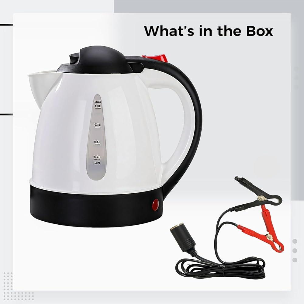 【Large Capacity and Fast Heating】 This portable car electric kettle features a generous 1000ml capacity, perfect for making tea, coffee, or instant noodles on the go. Equipped with a powerful 150W heating element, it quickly brings water to a boil, saving you valuable time during your travels. Ideal for use in sedans, SUVs, and trucks, it ensures you always have hot water available.