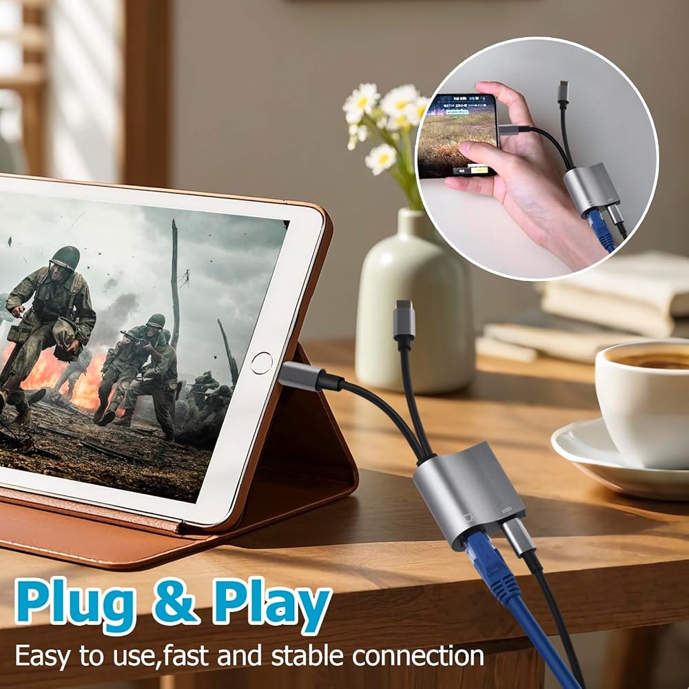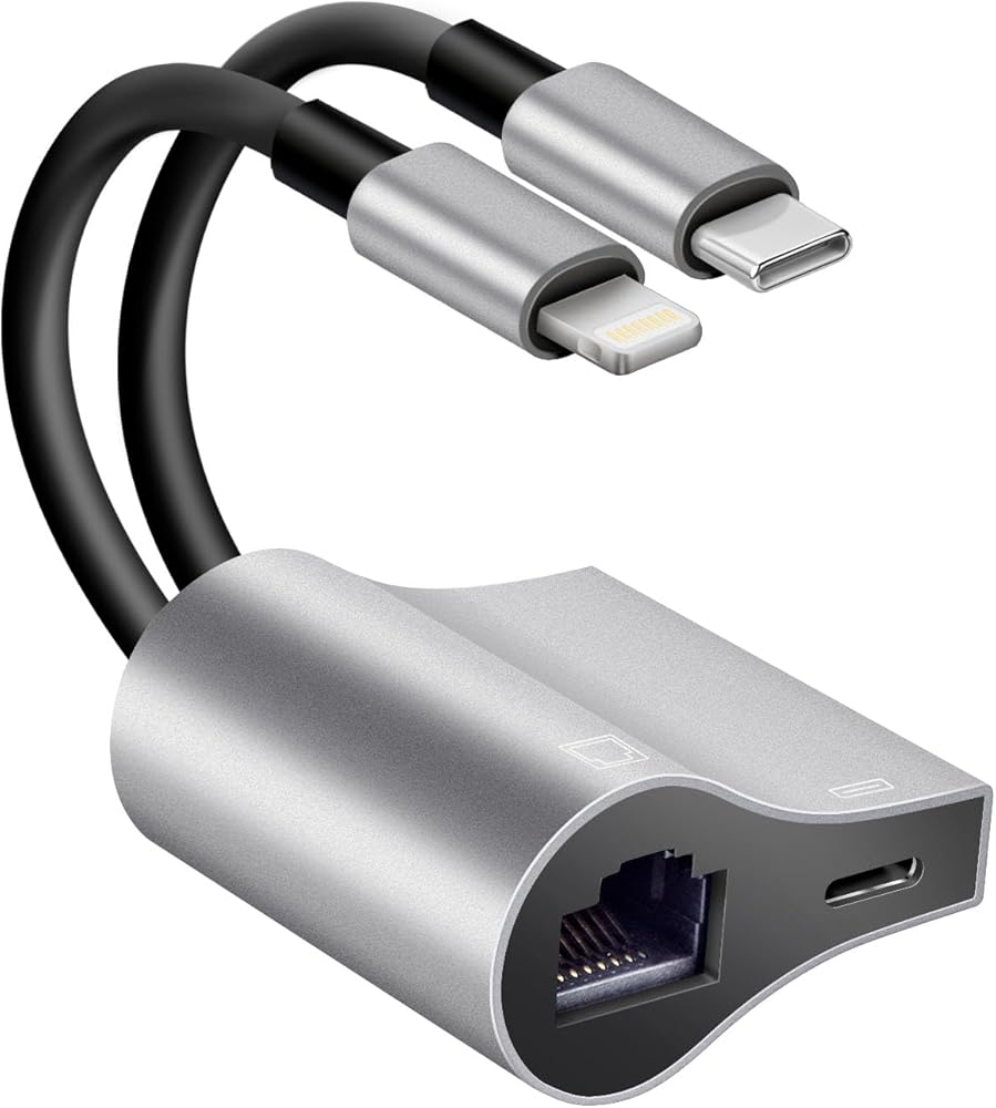 2 in 1 Lightning and Type C to RJ45 Ethernet Adapter Network Adapter,with Charge Port, Plug and Play,Supports 100Mbps Ethernet Network, Compatible with iPhone 14 13 12 11/iPad