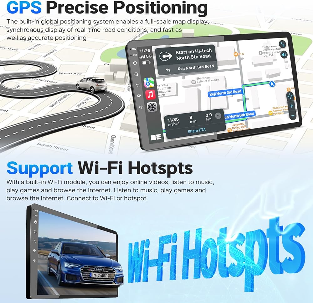 GPS Navigation & WiFi Connectivity - For 2004-2010 Toyota Sienna carplay head unit comes with a GPS navigation system, making it convenient for traveling. Supports both offline and online maps. Compared with traditional navigation devices, this GPS for cars can navigate in real-time with the mobile phone map, and sync the latest smartphone GPS navigation at any time. A touch screen display can connect to WiFi or mobile hotspots, allowing you to download software anytime, anywhere.