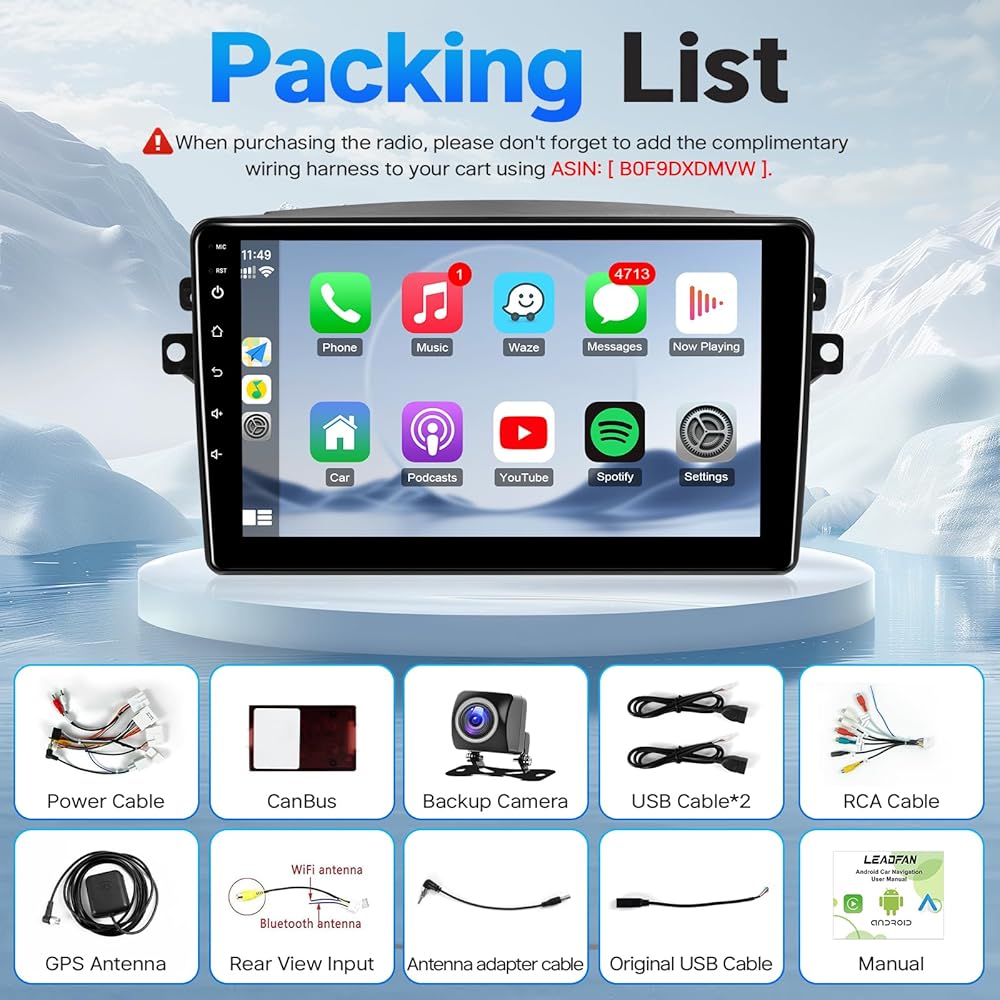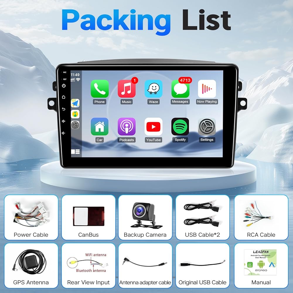 Leadfan Android Radio Stereo for Toyota Sienna 2004-2010 Wireless Carplay Android Auto, 9" Touch Screen for Sienna Head Unit BT/Voice Control/GPS/WiFi/Camera/SWC/FM (FIT J.B.L)