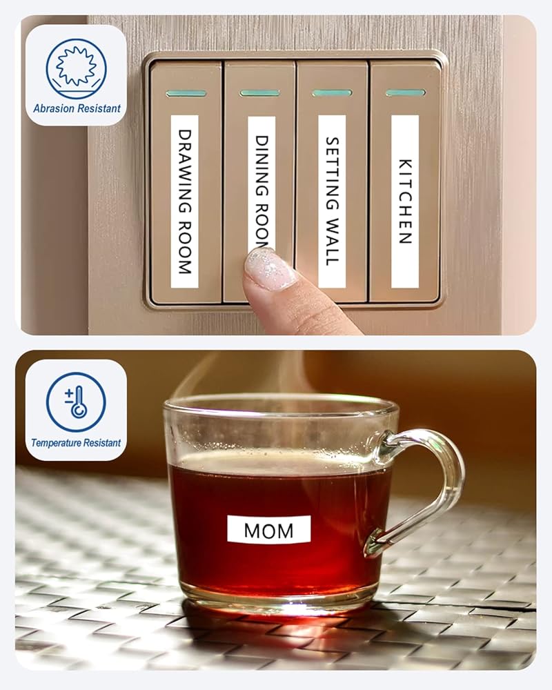 These compatible for brother label maker tape 12mm 0.47 tape have strong adhesive and no sticky residue when you remove it. The split back design of ptouch label tape 12mm white tape is very easy to peel off