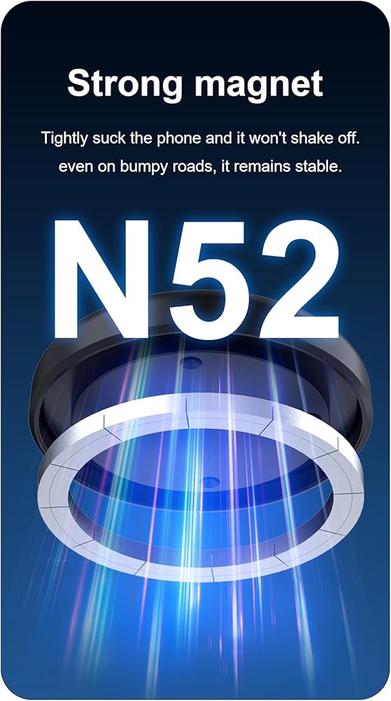 【Super Magnetic Force】N52 strong magnet, vacuum adsorption will not fall off, can be directly adsorption, intelligent induction is strict, automatic exhaust is convenient, more comfortable to use. It can be firmly glued to the car, fixed equipment, adapt to various road conditions, such as sudden braking, speed bumps, etc.
