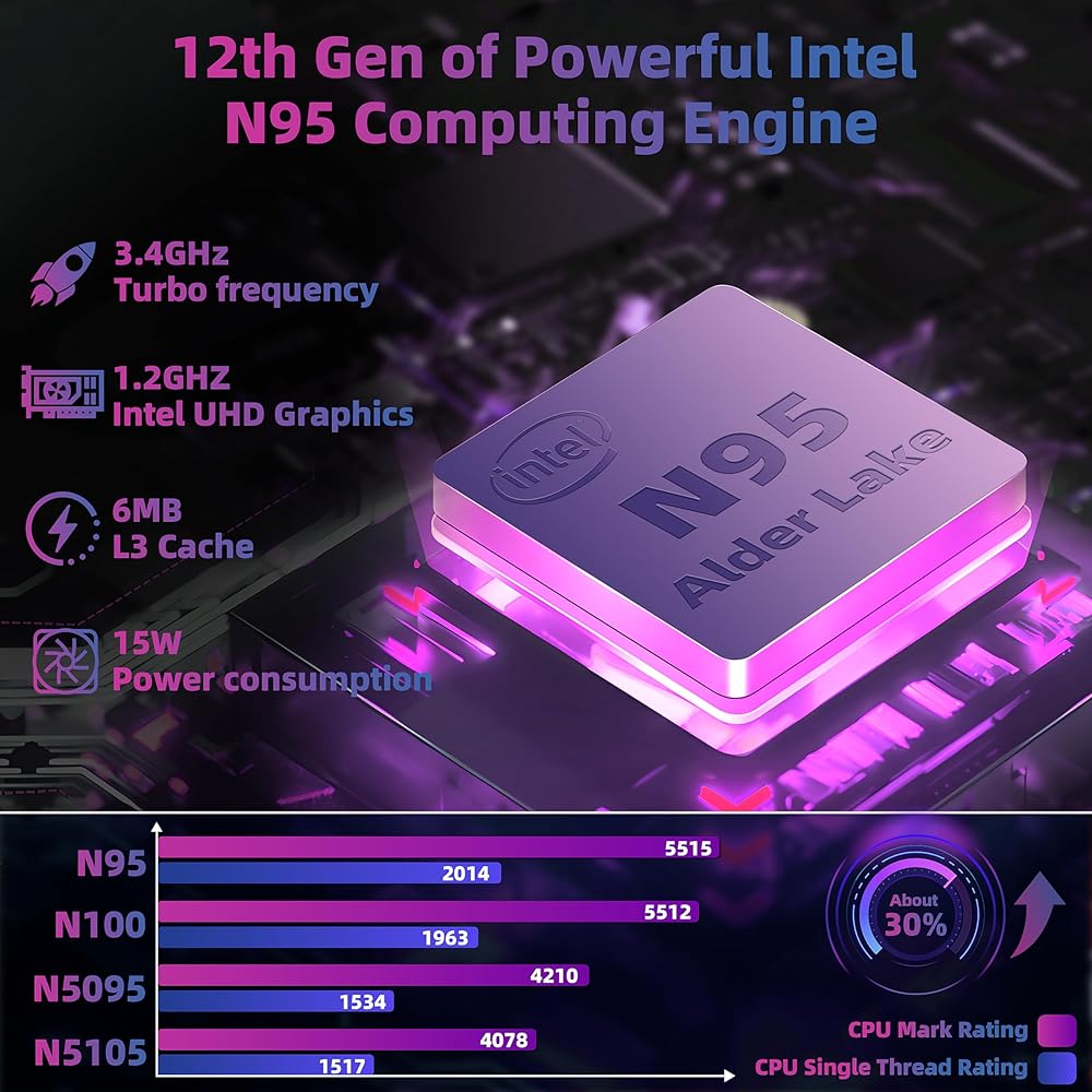 【Experience Ultimate Performance with N95 Processor】The 14 in tablet built-in Intel Alder Lake N95 CPU, up to 3.4GHz, 6MB cache. N5105/N5095/N5100 Compared with Alder Lake, the performance of N95 is improved by up to 30%.With its quick clock speed and reliable performance, it effortlessly handles tasks like document processing, web browsing, and light multitasking.