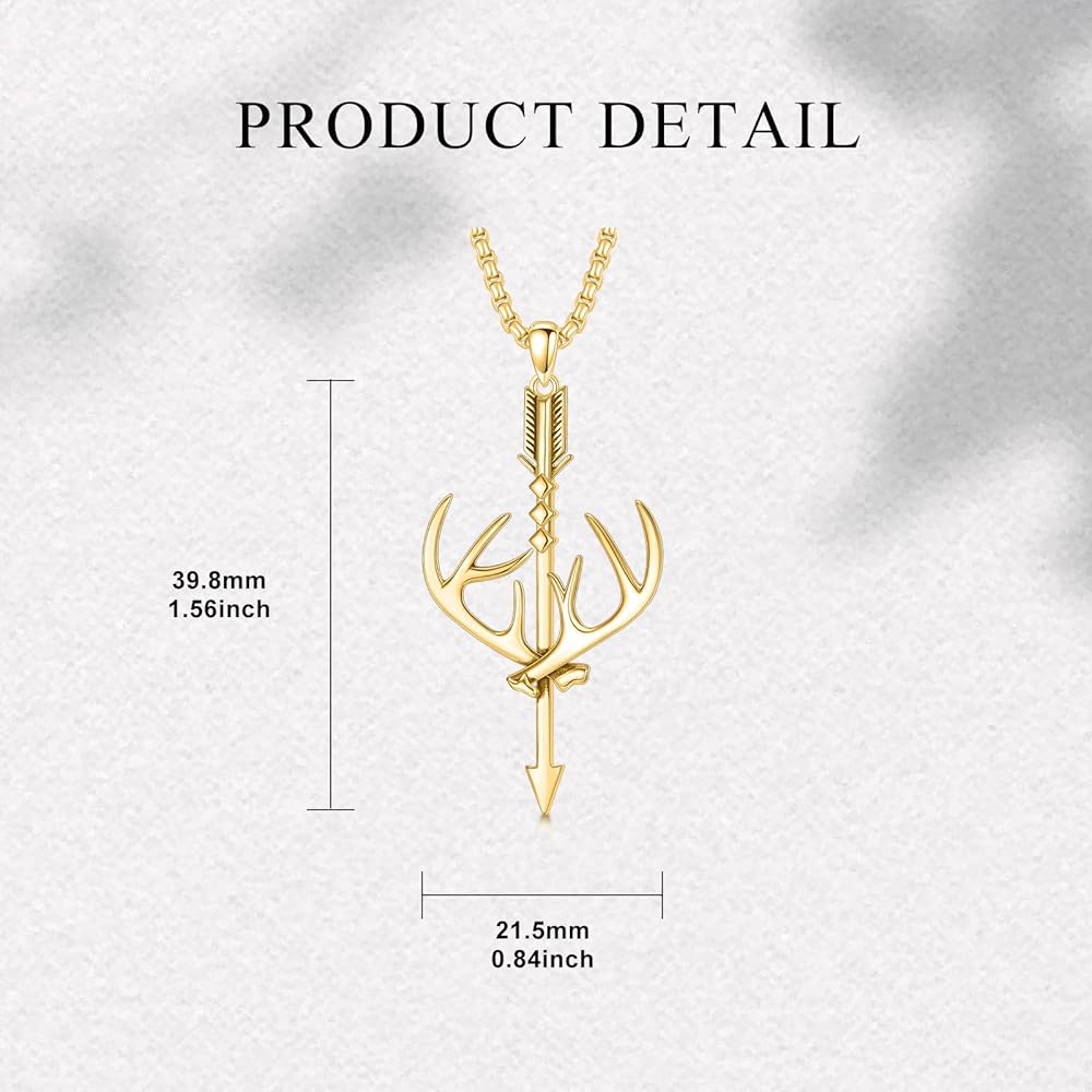 Material: Arrow and Deer Antler Pendant made of real 925 sterling silver. Stainless Steel Chain. Hypoallergenic, lead-free, nickel-free, cadmium-free. Smooth and durable, not easy to fade, rust, tarnish, and more suitable for men with sensitive skin