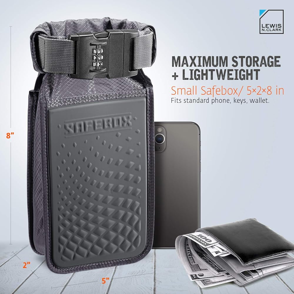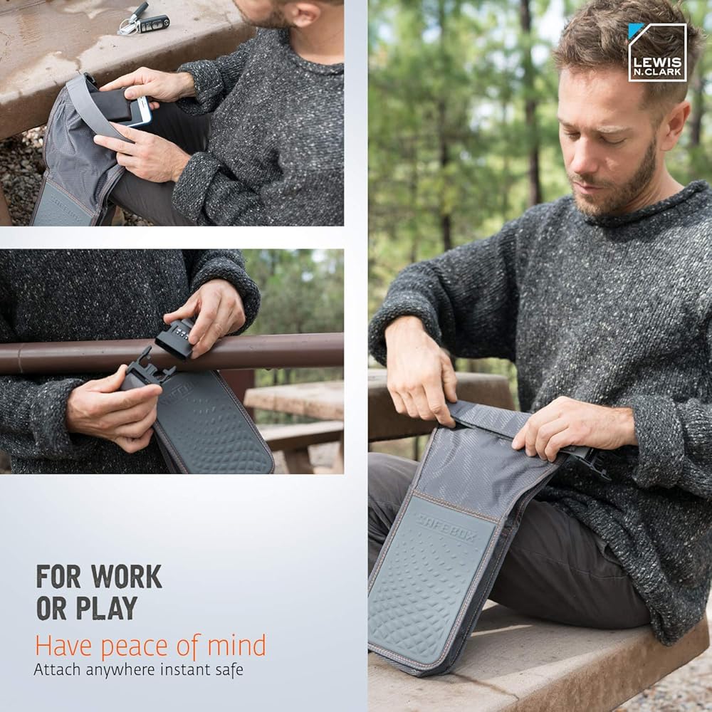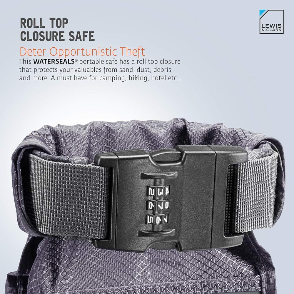 Portable and secure bag with a combination lock - it's basically a portable safe! Waterproof, slash-resistant yet light and portable. Store phone, wallet, cash, keys, jewelry, passport, and so much more! Perfect for travel and just about any outdoor activity, just lock to a chair, bench, fence, closet rod, golf cart, etc. Use it at hotel, beach, cruise, camp, part, school, hospital, etc.