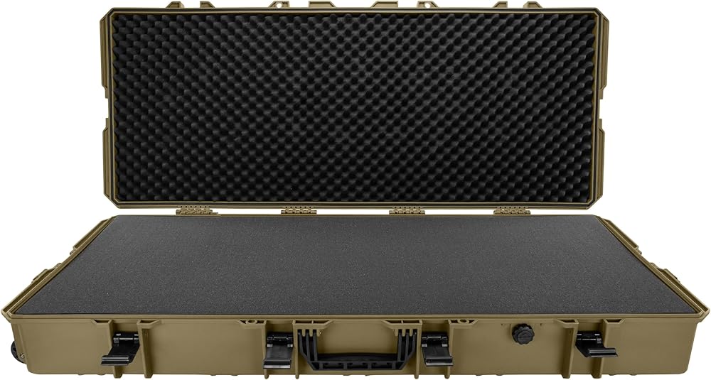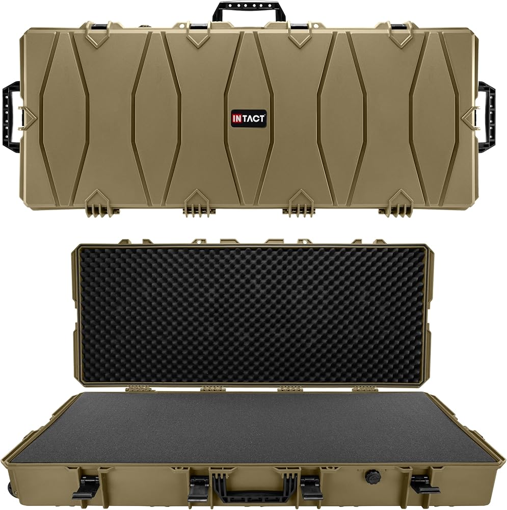 Introducing the 48" Stacker Series Deep & Wide Roller Rifle Gear Case with Foam - the ultimate solution for securely transporting your valuable gear and equipment. This case is specifically designed to accommodate rifles and gear, with five layers of foam providing superior protection. Crafted from reinforced high-pressure polypropylene plastic, this case is durable and reliable. Equipped with two standard padlock mounting points for added security, a convenient center handle for easy carrying, and integrated solid rolling wheels, this case offers effortless transport. Upgrade your gear storage with the 48" Stacker Series Deep & Wide Roller Rifle Gear Case and keep your equipment safe and organized wherever you go. With a limited lifetime warranty, this Intact series case is built to last. It provides reliable protection for your firearms, making it an essential item for any gun enthusiast.