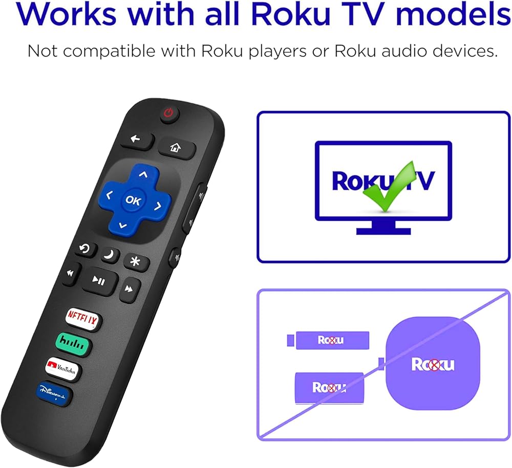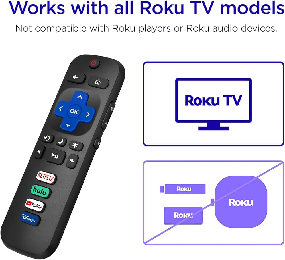COMPATIBILITY: Works with TCL, Hisense, Sharp, Philips, Onn, and Element Roku TV models, but not compatible with Roku streaming stick, box, or speaker
