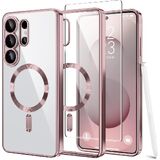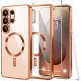 Magnetic Case Compatible with Samsung Galaxy S25 Ultra,Compatible with MagSafe,[Full Camera Protection][Screen Protector]Shockproof Plating Clear Phone Cover for Galaxy S25 Ultra 6.9 Inch(Blue/Clear)