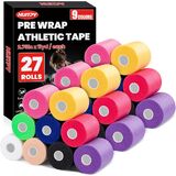 【9 Rolls Pre Wrap Tape】Package includes 9 rolls pre wrap tape. Each prewrap athletic tape is 2.76 inch wide and 11 yard long, They all made of pu foam and no adhesive included, This underwrap tape set include 9 colors: blue, pink, purple, white, red, black, skin color, green, yellow, You can experience different colors every time you exercise, and you can also share different colors with friends