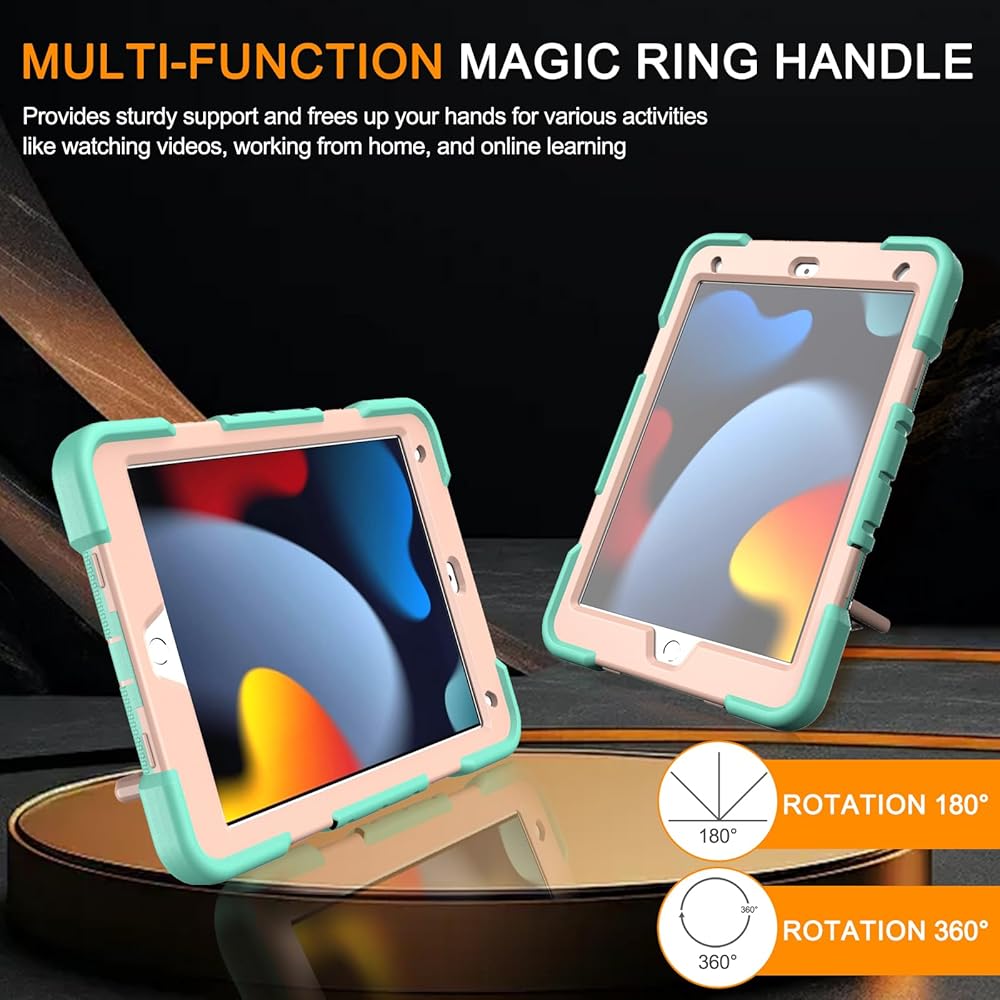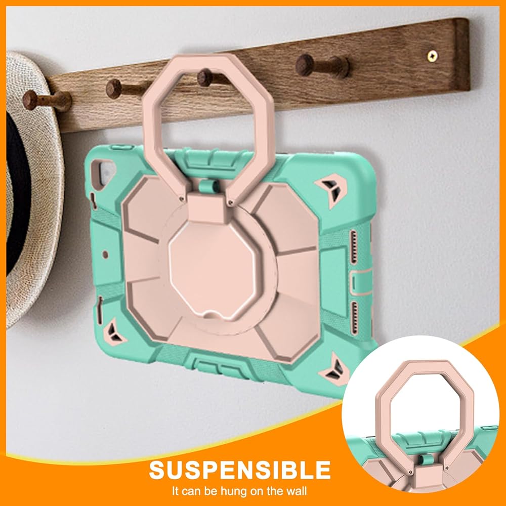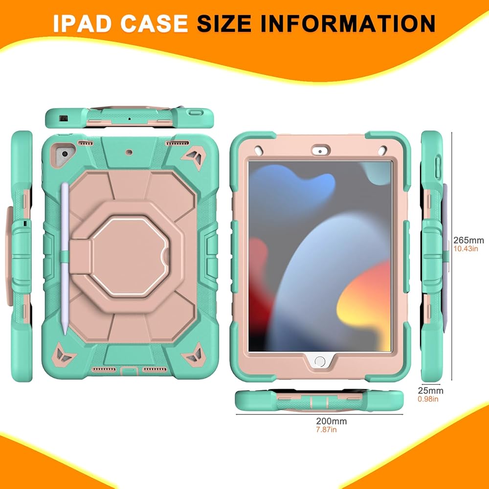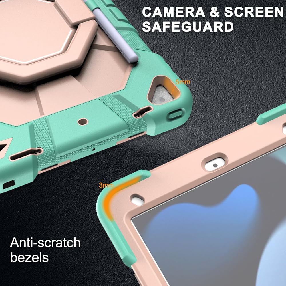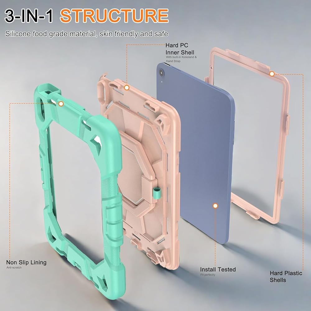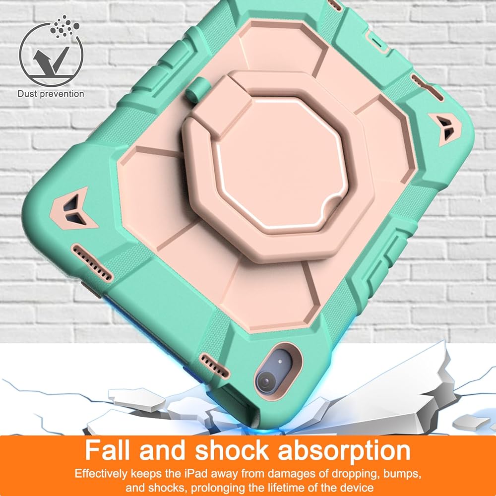 Case for iPad (A16) 11thGeneration 11" 2025/ iPad 10th Generation with Pencil Holder 2022 10.9 Inch, Heavy Duty Shockproof Rugged Protective Case with 360° Rotate Hand Stand.(Green+Pink)