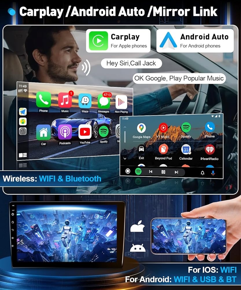 【Wireless CarPlay/Android Auto/ Mirror Link/ Voice Control】This for 2007 Toyota Tacoma car radio supports wireless carplay and wireless Android auto.The 2006 toyota tacoma carplay with the convenience of Voice Control,just effortlessly activate Siri or Google Assistant, granting you seamless access to your phone's maps, music, messages, and calls, all through voice commands.