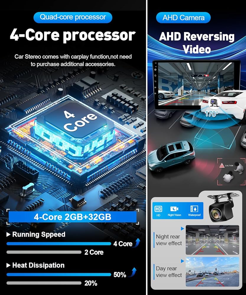 【AHD Backup Camera & SWC】This carplay screen for tacoma 2010 equipped with AHD backup camera, which can automatically displays the image on the Tacoma screen when reversing your car. Help you drive safer and park easier. It also suppports steering wheel control, you can switch songs adjust the volume and answer the phone through the steering wheel, it is very convenient and makes you more focus on driving, remember to connect the swc cable.
