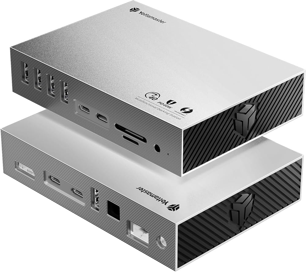 Yottamaster USB 4 Dock Compatible with Thunderbolt 3/4, 15 in 1 USB C Docking Station Dual Monitor for Laptop, DisplayPort, 60W Laptop Charging, S/PDIF, Audio, 6 USB, Gigabit Ethernet, SD/TF - Gray