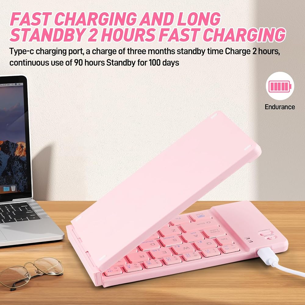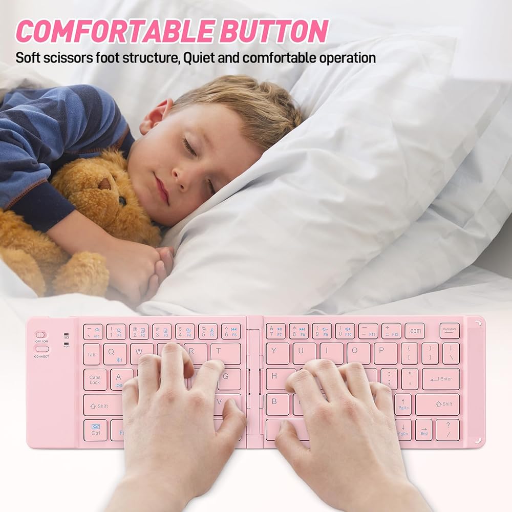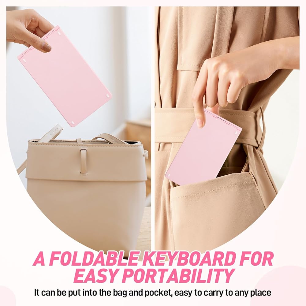 • Mini Rechargeable Foldable Bluetooth Keyboard And Mouse Combo, Portable (Sync Up to 3 Devices), Ultra-Slim Travel Folding Keyboard for iPhone iPad Mac Android Windows iOS