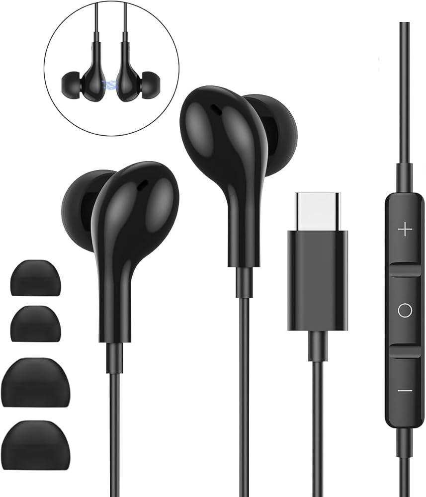 Wired Earbuds USB C with Microphone Headphone in Ear Earphone, USB-C Plug Gaming Corded Ear Buds Noise-Cancelling in-Ear Headset Clear Sound,Control Music, Phone Calls and Volume for Work Sport