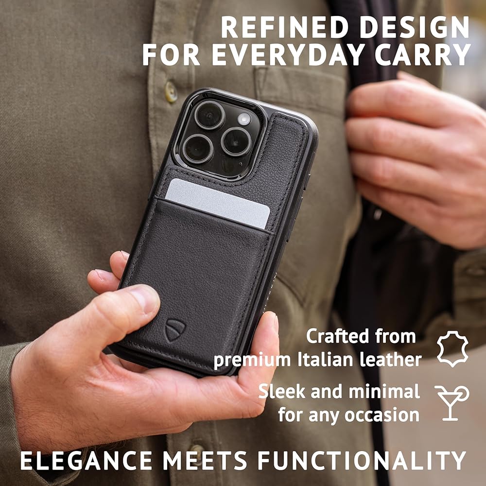 Vaultskin for iPhone 16 Pro Case - Slim Leather Case with Card Holder, Magnetic Closure and Drop Protection, Stylish Wallet for iPhone 16 Pro, Ideal Gift (Cognac, Eton) Black