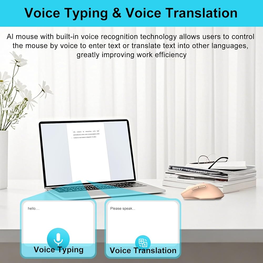 AI Mouse, Bluetooth Wireless Mouse with Voice Input Search, Voice and Word Translation, Form Document Output, Code Generation, AI Writing, AI Drawing, Rechargeable, for Windows, macOS(Pink)