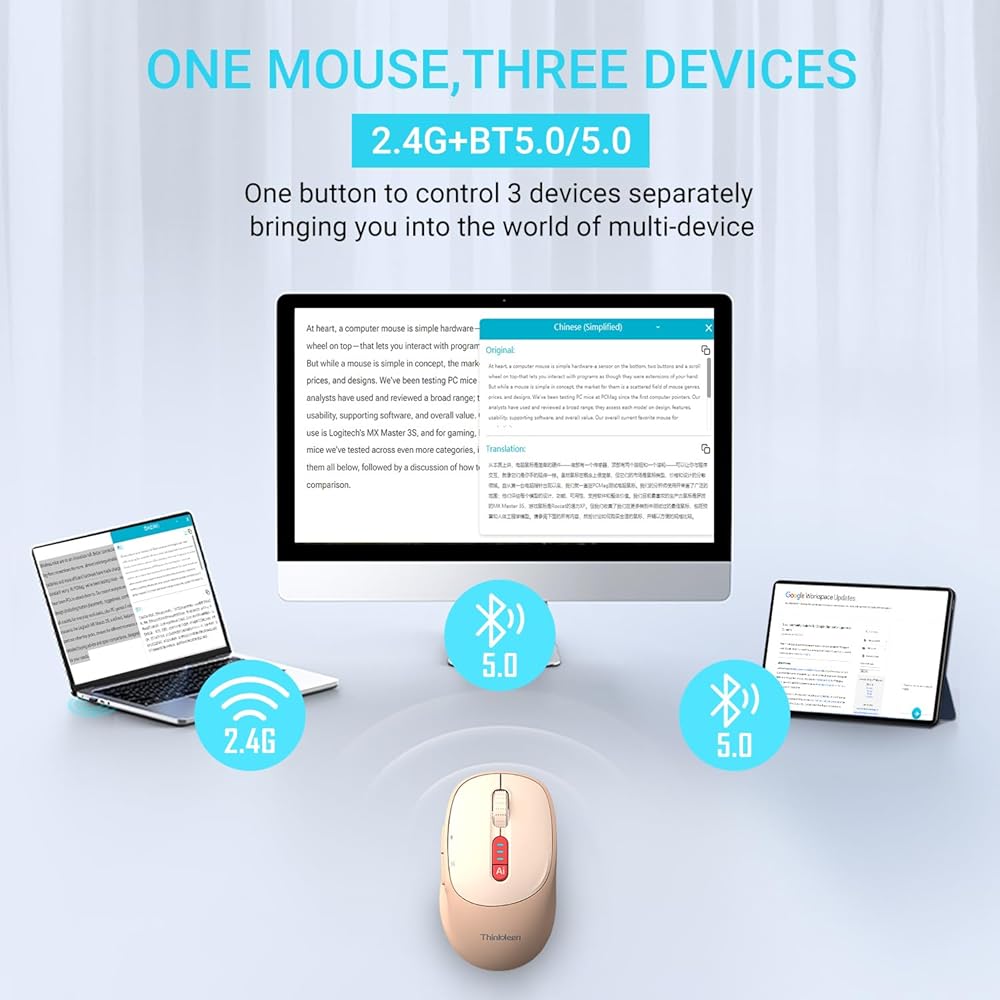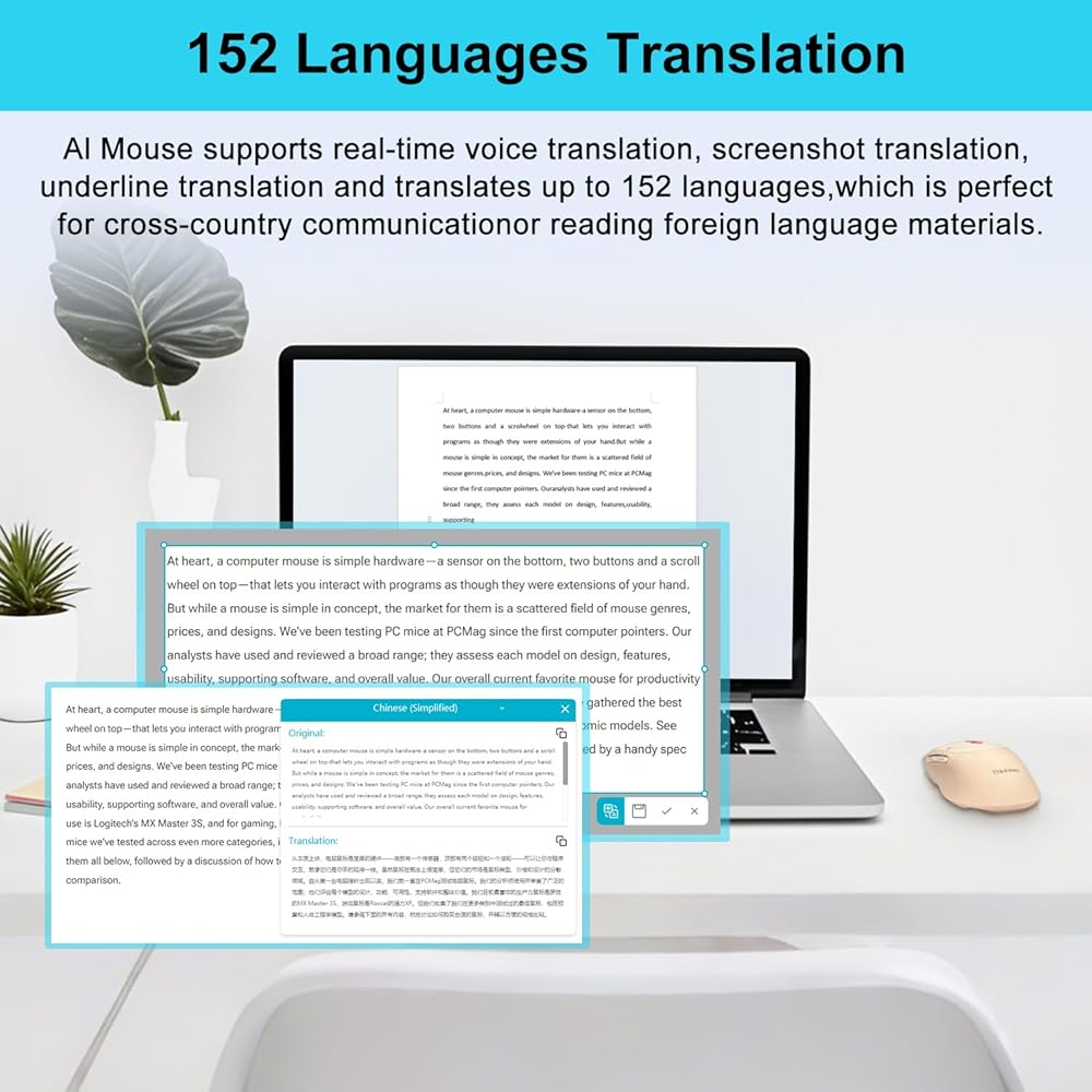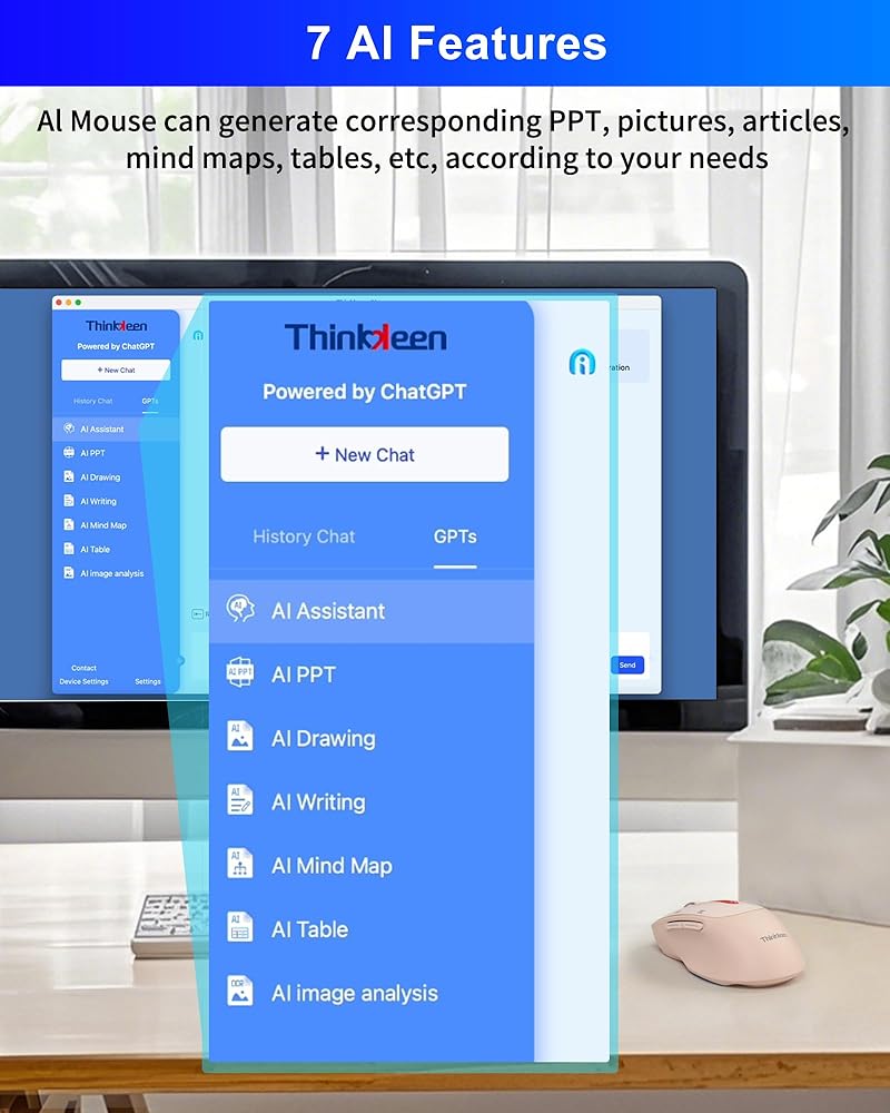 【AI GPT Mouse】The THINKKEEN AI mouse is an intelligent voice mouse that, in addition to its basic functions, can also achieve functions such as voice typing, voice translation, voice search, voice control, screenshot recognition and translation word recognition and translation, button customization, Al intelligent writing AI PPT, Al Drawing, Al Mind Map, Al Table etc.(Language translation in 152 languages)
