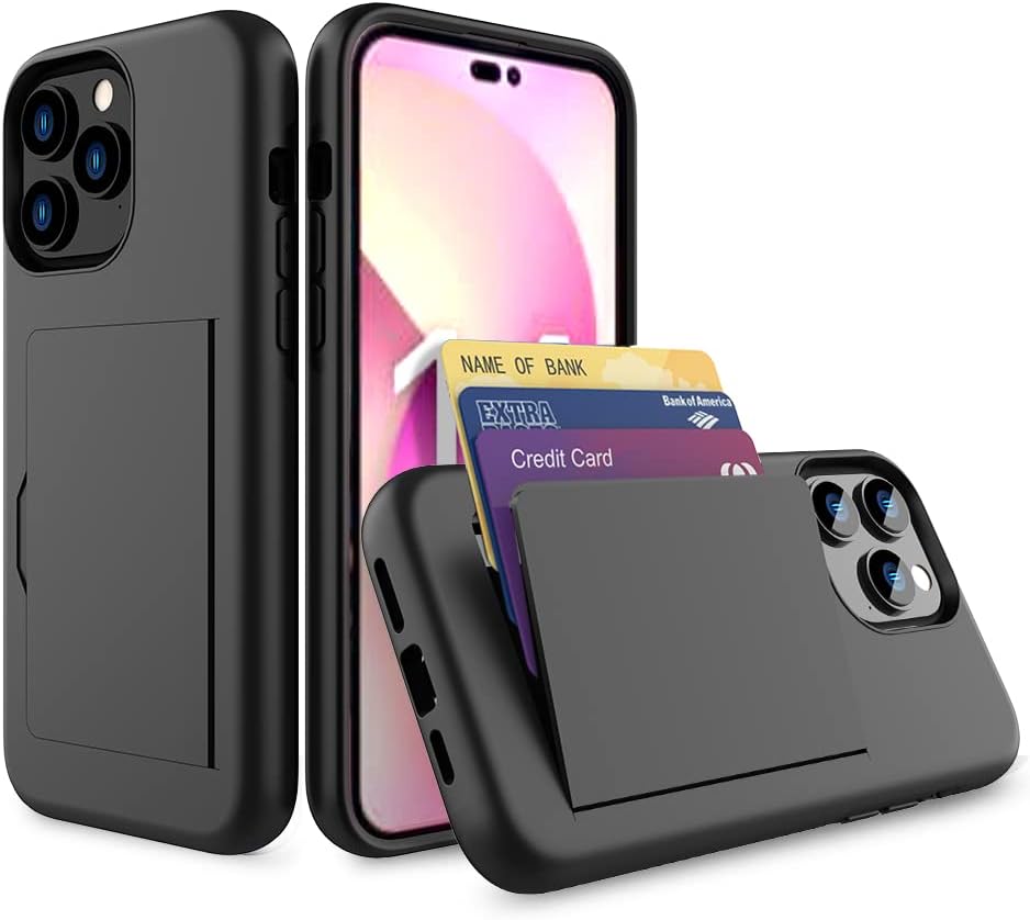 for iPhone 15 Pro Case with Card Holder,Credit Card Slot Protective Wallet Case - Black