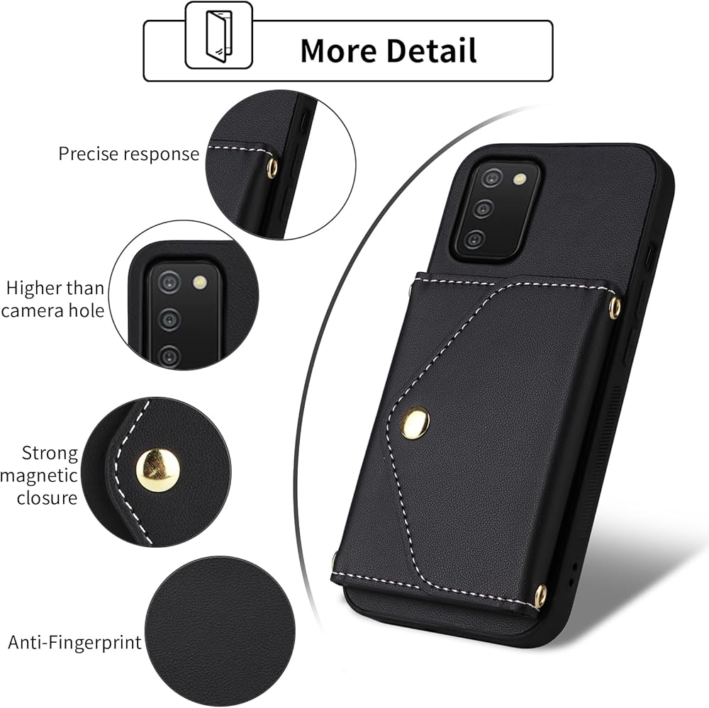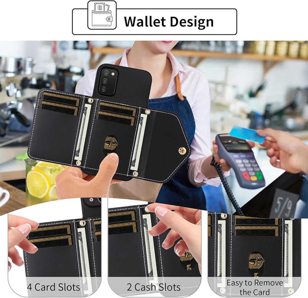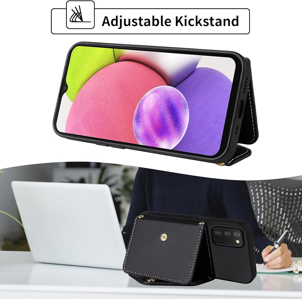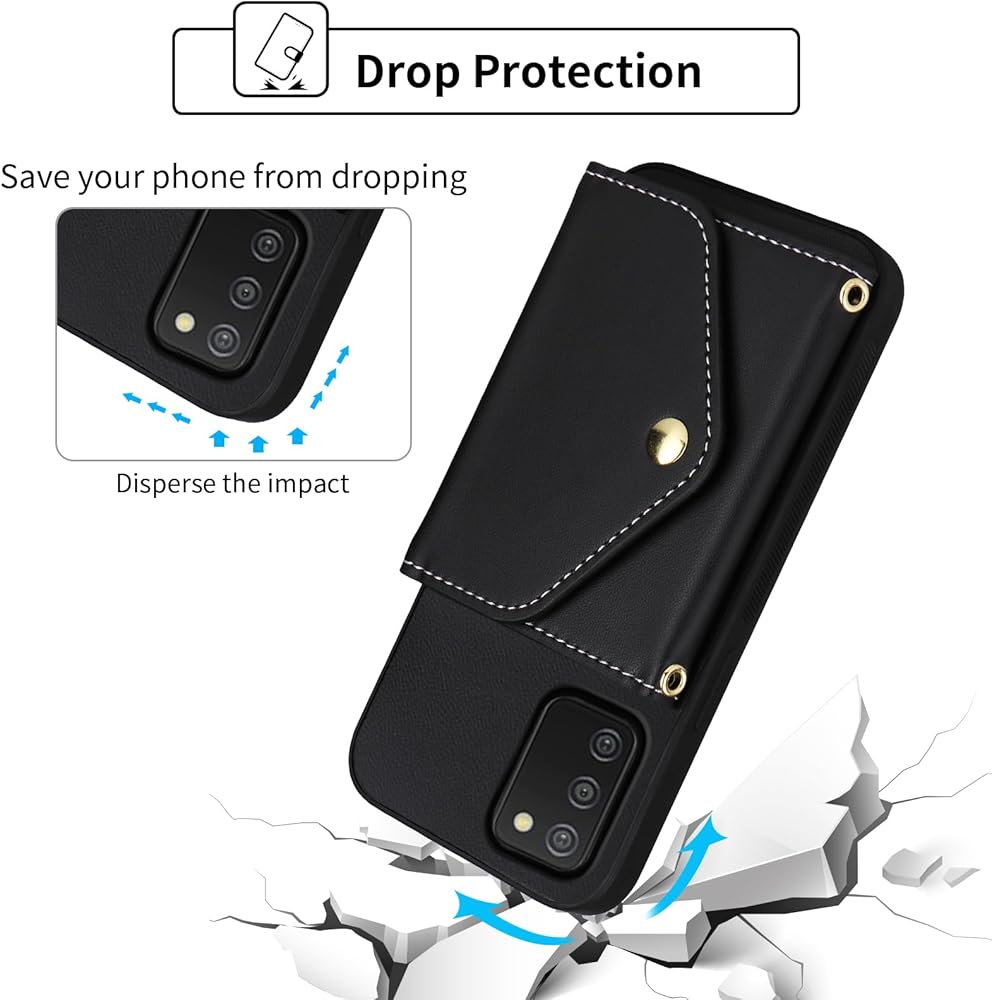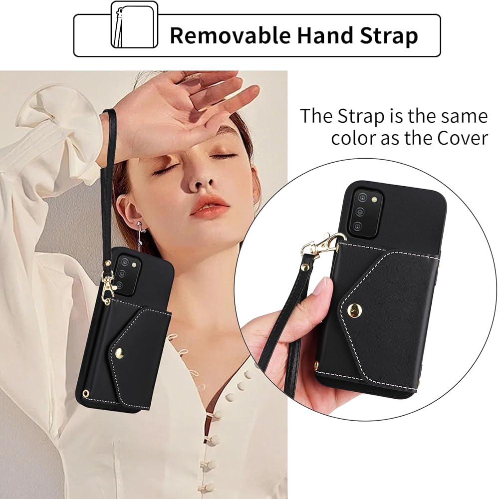 Wallet Case for Samsung Galaxy A03s US Version 5G 2022 with Wrist Lanyard Shoulder Strap, PU Leather Credit Card Holder Stand Cell Phone Cover for Ao3s A 03s SM-A037U SM A037U Women Men Black