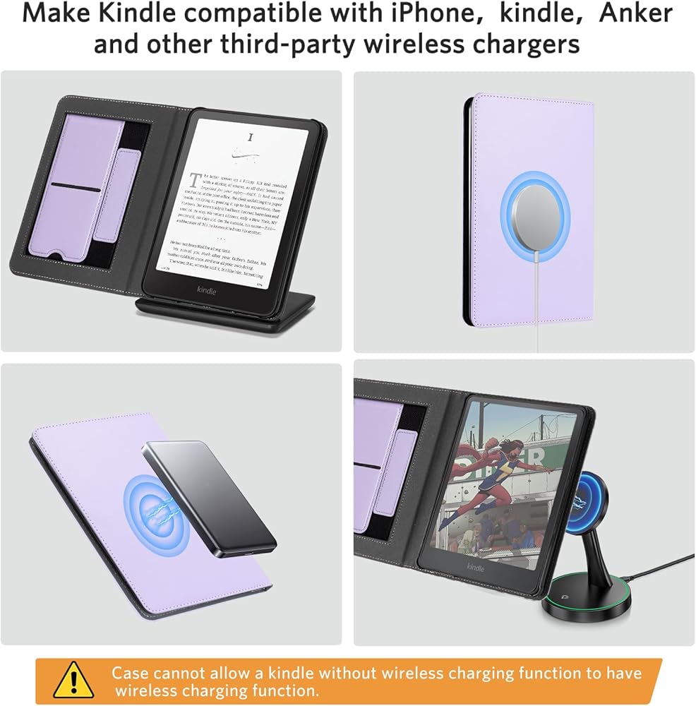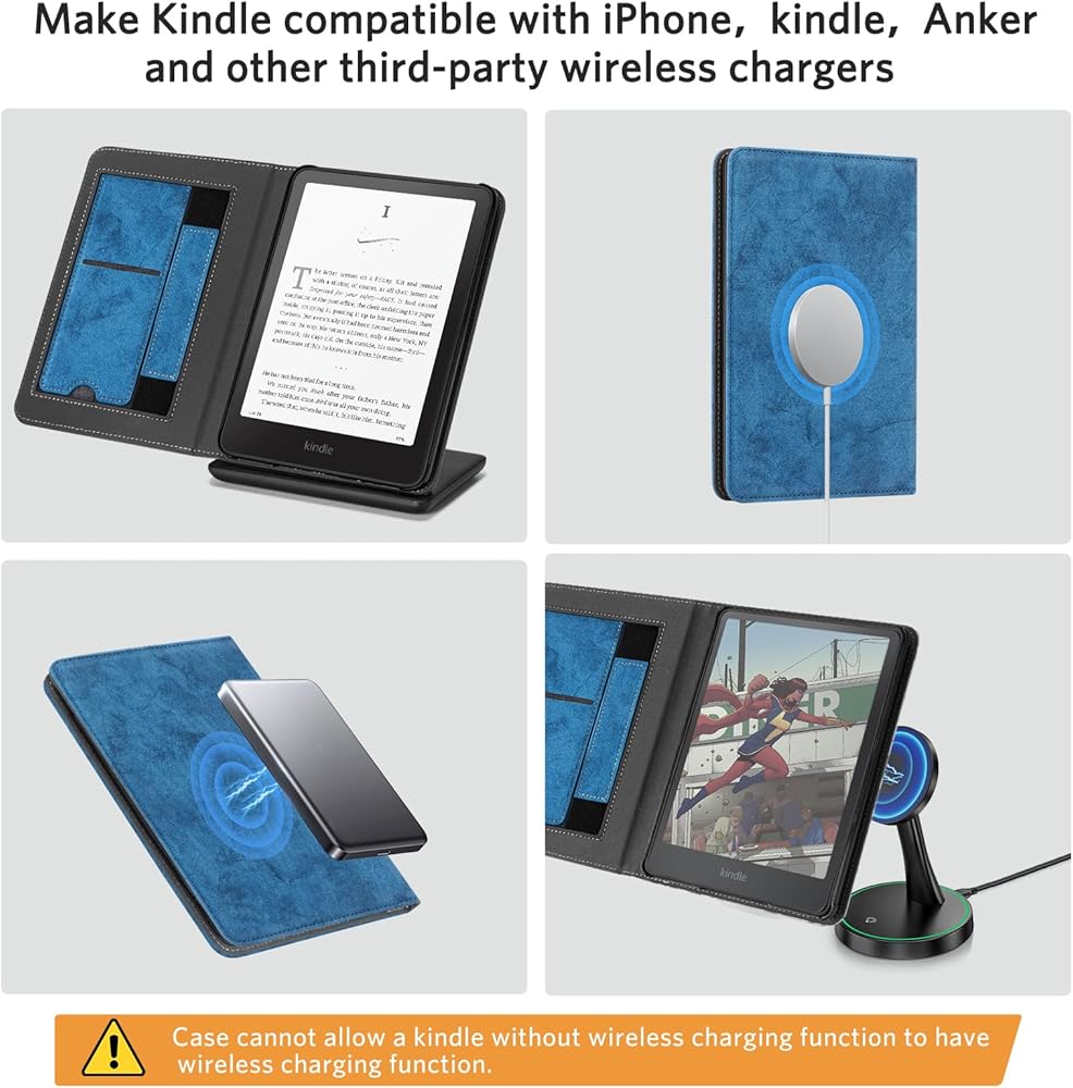 Innovative Features to Stand Out: This Kindle case is not just functional, it's revolutionary. With a built-in hand strap, kickstand, and wireless charging pads compatibility, it sets you apart as a modern, tech-savvy reader. Show off your style and innovation wherever you go. This case will not add wireless charging capability to non-wireless charging devices.