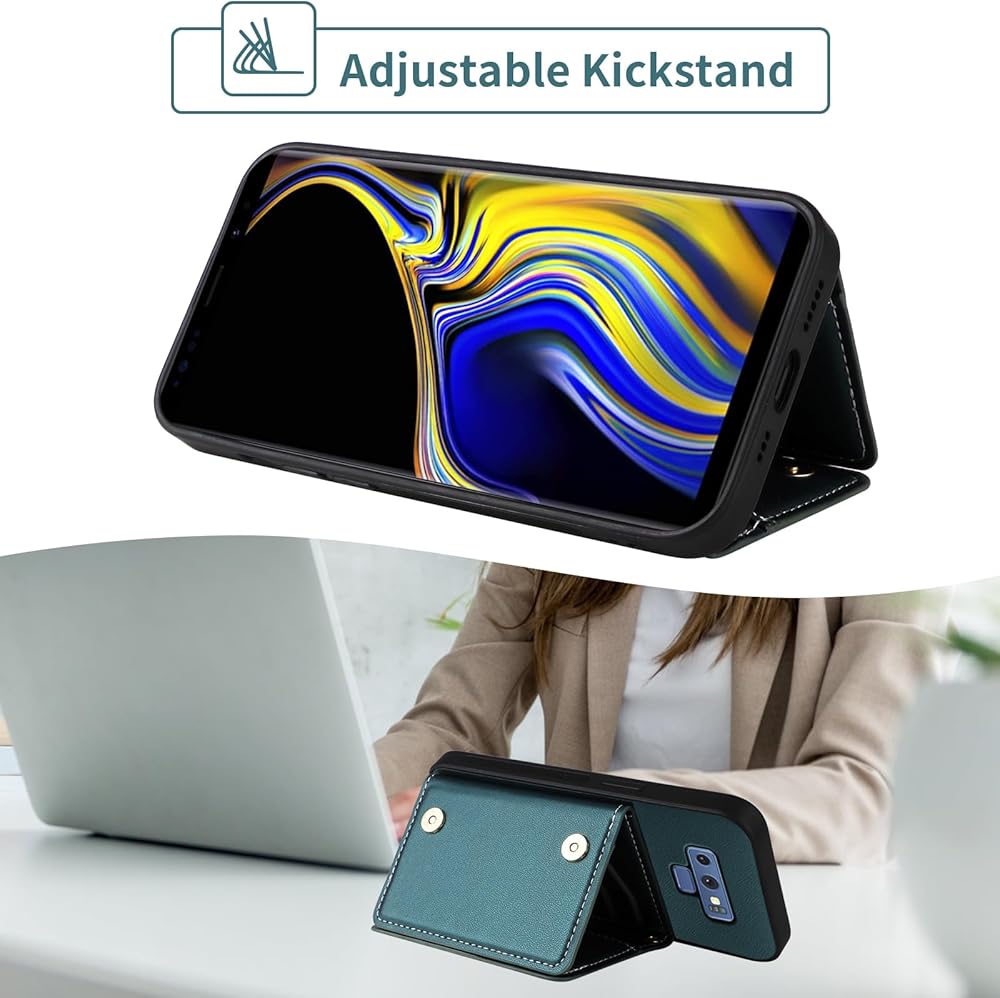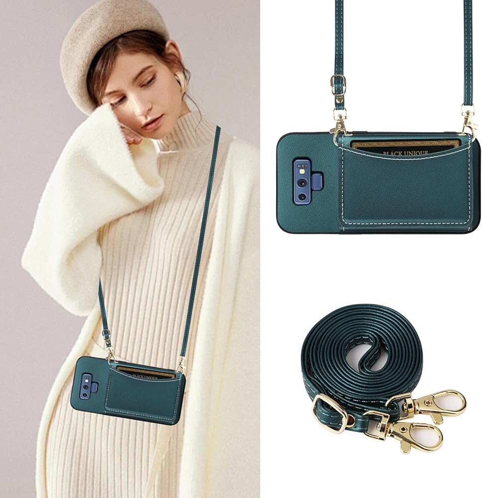Wallet Case for Samsung Galaxy Note 9 with Crossbody Strap Premium PU Leather Card Holder Shockproof Heavy Duty Full Body Accessories Slim Cell Phone Cover for Note9 Not S9 Women Men Green