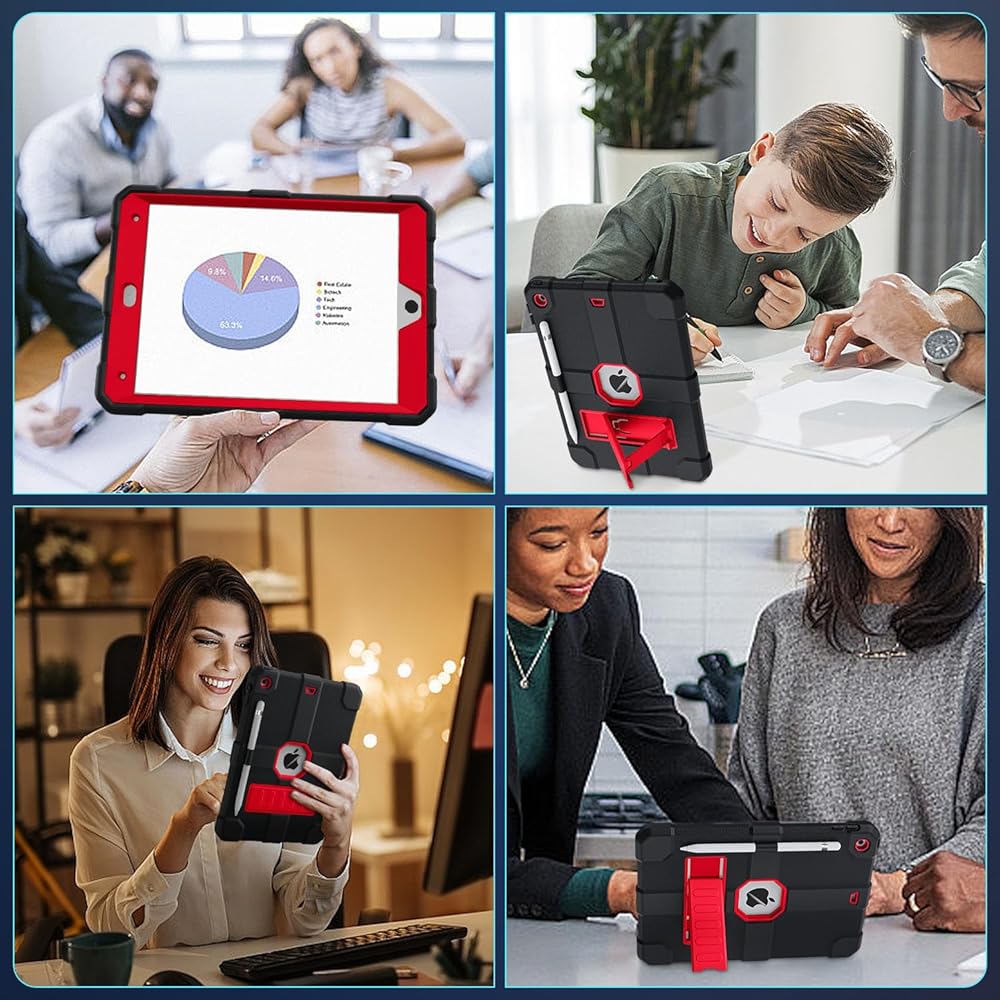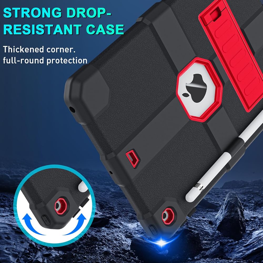 Case for iPad 9th/8th/7th Generation 2021/2020/2019(10.2 inch), Heavy Duty Shockproof Rugged Protective 10.2" Cover with Built-in Stand for iPad 9 8 7 Gen(Red+Black)