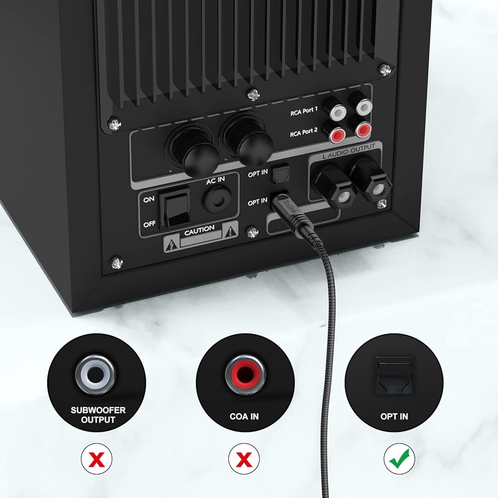PMMA fiber core Toslink cable provides you greater clarity and richer sound for an immersive sound experience while gaming or watching movies.