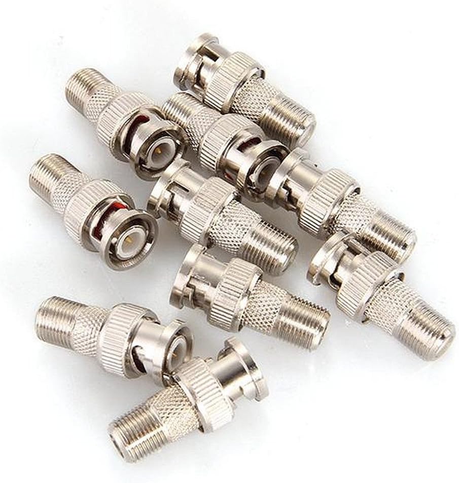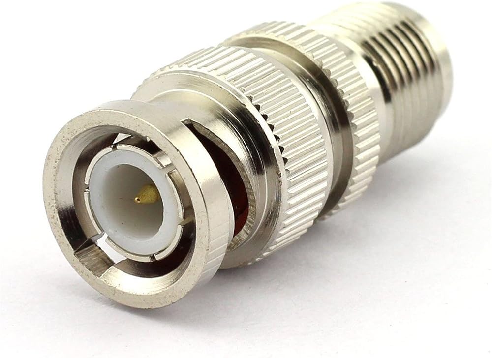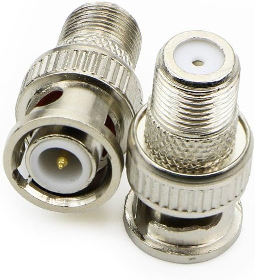 These adapters have a female F jack on one end, a male BNC plug on the other, and are constructed of nickel-plated brass with gold plated contacts.