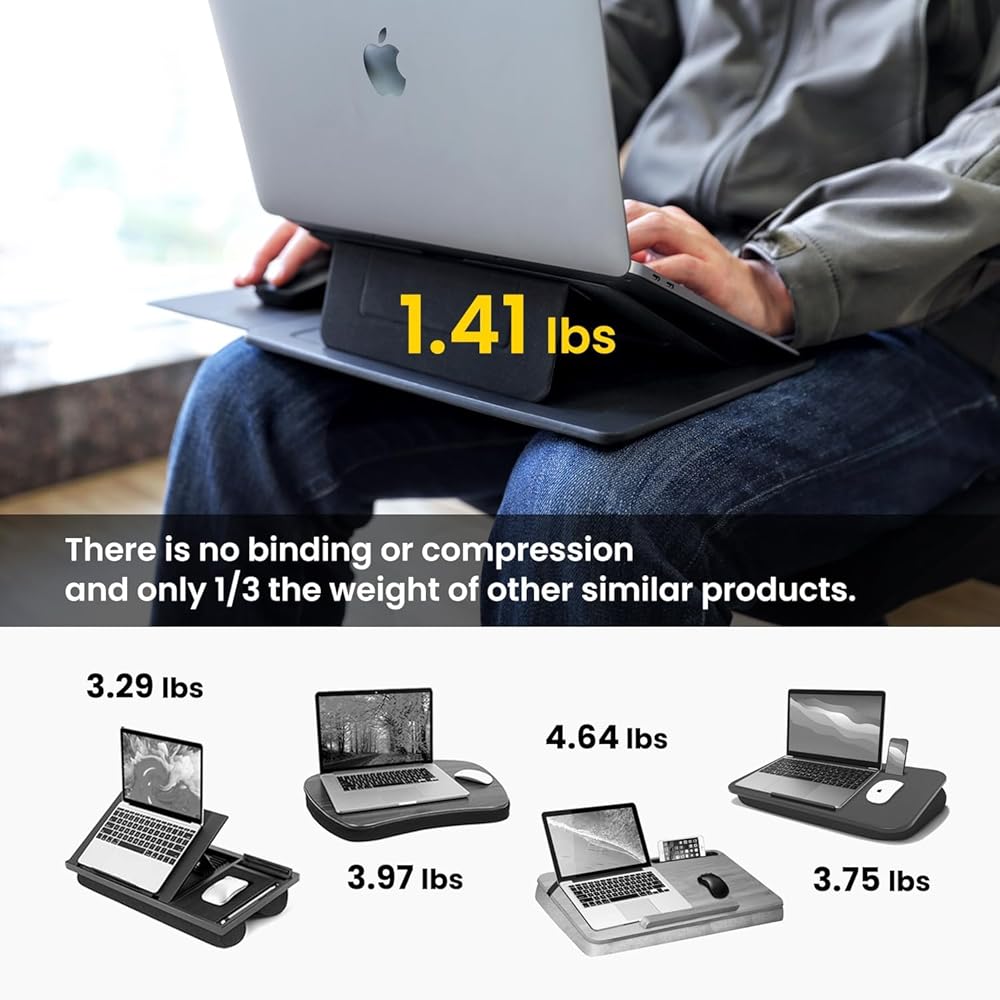 PUNCUBE Portable Lap Desk - Lap Desk with Retractable Mouse Pad, Adjustable Stand, Writing Board, Expandable Surface, and Heat Protection for Laptops and Tablets (Midnight Black)