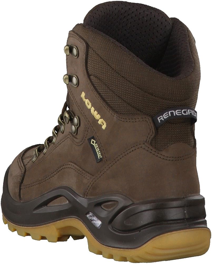Vibram OutsoleThe Renegade's nubuck leather upper securely holds the foot in place, reducing strain on the toes during downhill sections. Its Monowrap midsole technology reduces overall boot weight, while providing extra cushioning and lateral stability. A rugged Vibram outsole and thick, nonslip rubber lugs make these boots ideal for hiking, light backpacking, and other outdoor activities where you need traction and grip. This shoe is built on gender-specific, men's and women's lasts, for optimal fit and comfort.