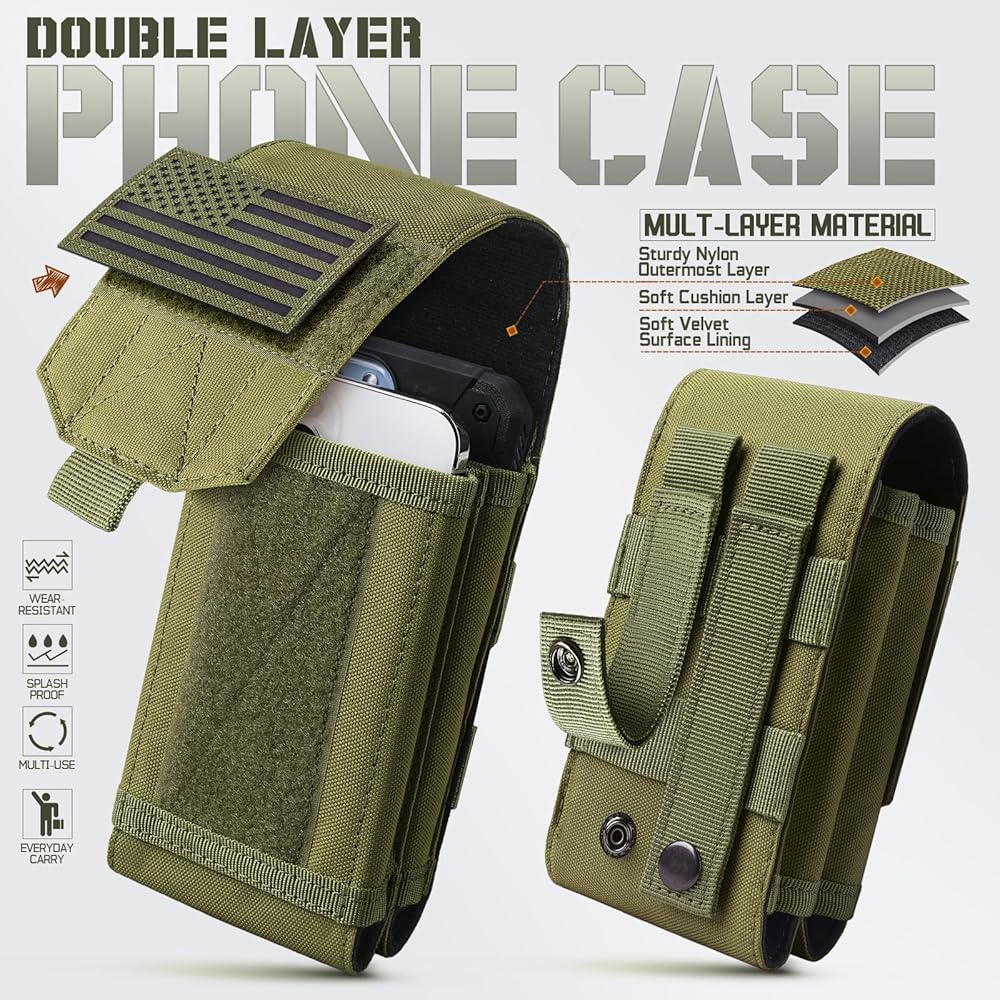Molle Phone Pouch Tactical Phone Holster Universal Dual Cell Phone Holder Utility EDC Pouch with US Flag Patch