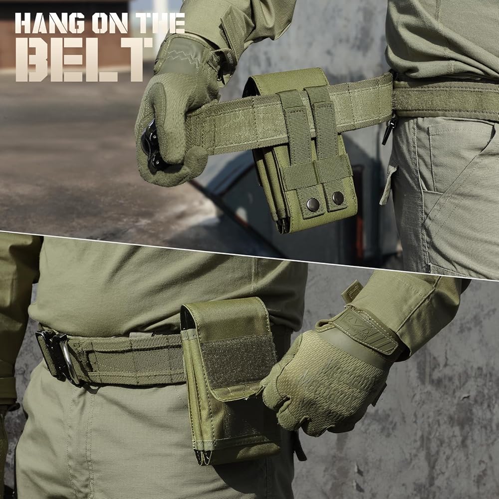 Molle System: Molle Phone Holder has two Molle back straps with snap button, which can be attached to molle-compatiable military gear such as tactical backpack, shoulder strap, duty belt, vest carrier. Utility Molle Accessories for on the go.