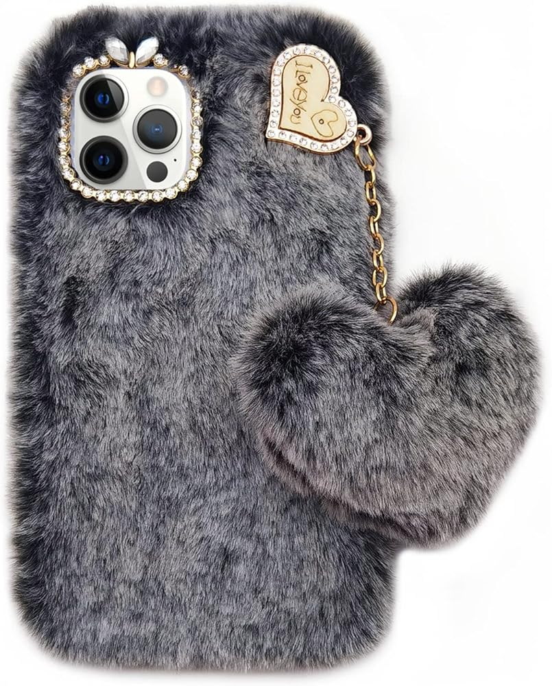 DESIGN: The camera lens ring is adorned with sparkling diamonds, adding a touch of sparkle and elegance to your device. This 3D heart shaped plush pendant is not only stylish, but also very cute and guaranteed to receive lots of compliments wherever you go. In addition, the soft and cozy rabbit fur will keep your hands warm in the winter.