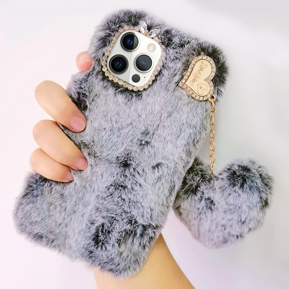 MATERIAL: This cute phone case is made of soft plush, not only soft and fluffy, but also lightweight to ensure that it won't add any extra weight to your phone. Luxury fashion accessory designed for women and girls. This cute and eye-catching case is the perfect way to add charm to your phone.