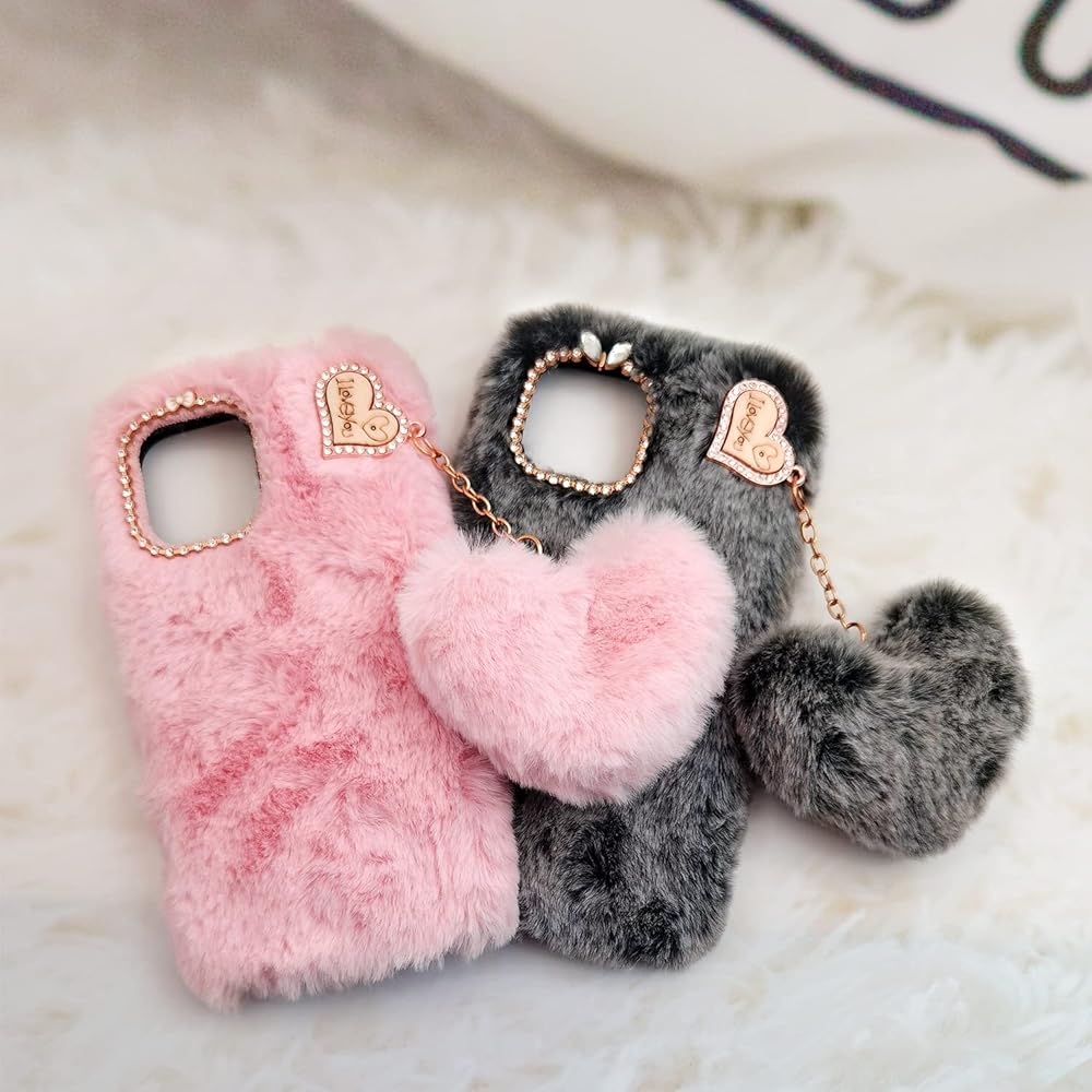 1*Plush Furry Phone Case wtih 3D Heart Ball Pendant