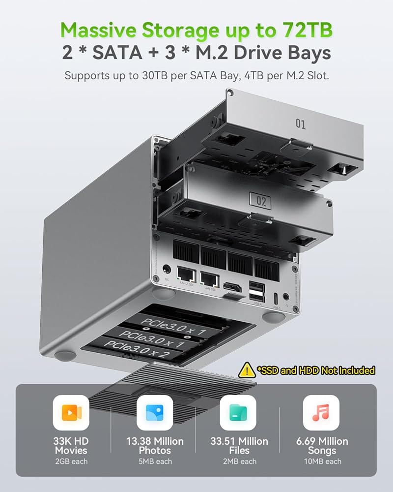 16GB DDR4 RAM 500GB SSD: Beelink Mini S12 Pro mini computer comes with 16 GB DDR4 RAM and 500 GB M.2 2280 SSD, supports single channel SODIMM DDR4 (max 3200 MHz), enjoy super fast speed. You can expand the storage up to 2 TB M.2 2280 NVMe / SATA3 SSD or add a 2 TB 2.5 inch 7 mm SATA3 HDD / SSD, both noth included in the package