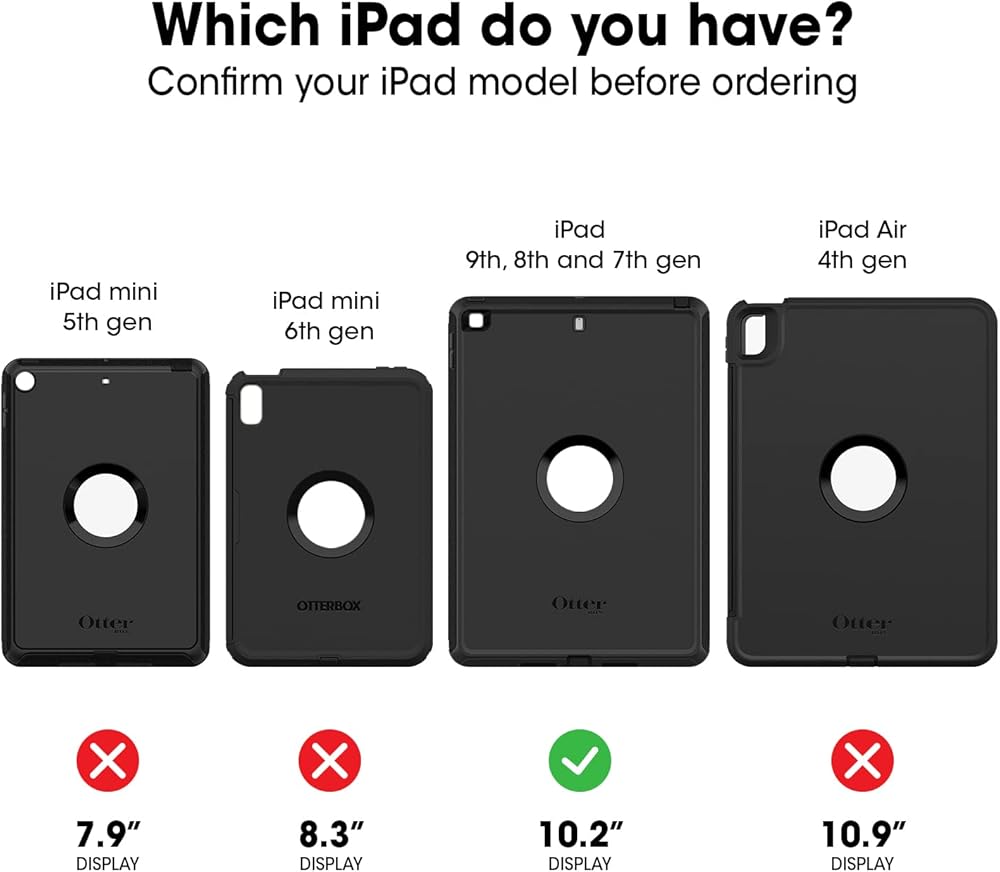 OtterBox Defender Series Case for iPad 7th, 8th & 9th Gen (10.2" Display - 2019, 2020 & 2021 Version) - Non-Retail/Ships in Polybag - Black, Rugged, Durable, Multi-Layer Protection