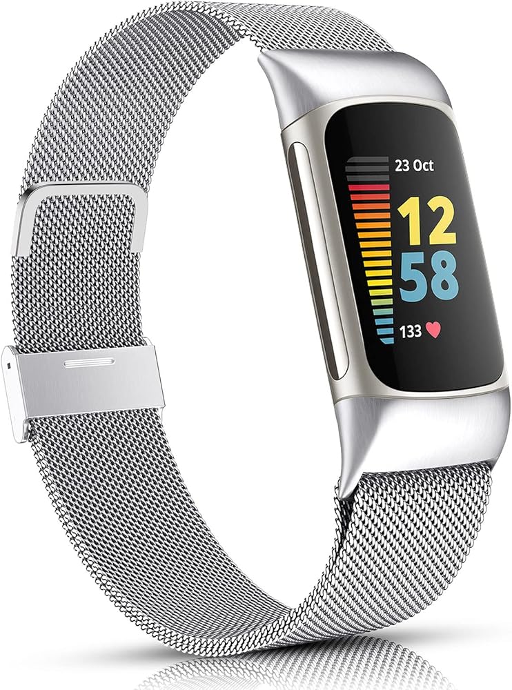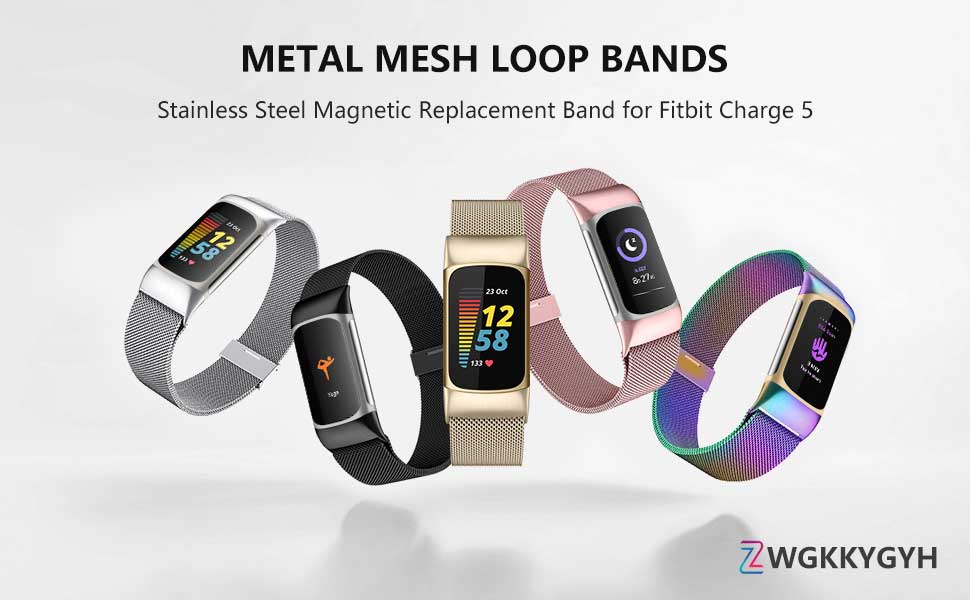 ZWGKKYGYH Stainless Steel Mesh Metal Bands Magnetic Strap Replacement for Fitbit Charge 5