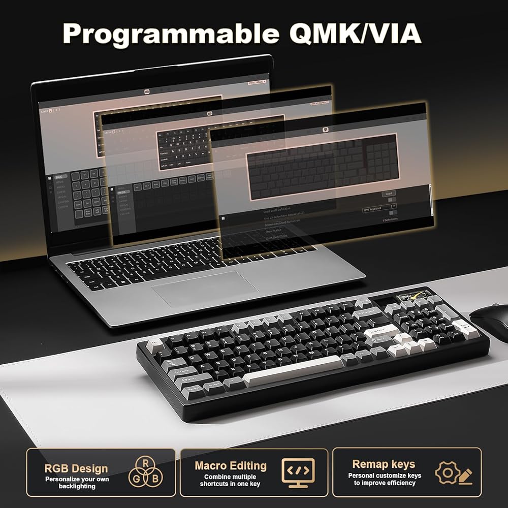 QMK/VIA Custom Keyboard for Full Control:Compatible with QMK and VIA software, the IF99 custom mechanical keyboard allows easy customization via Windows and macOS. Modify key mappings, create custom shortcuts, adjust RGB lighting effects, and more with this open-source platform. Achieve a truly personalized typing experience tailored to your typing, programmiong or gaming needs.