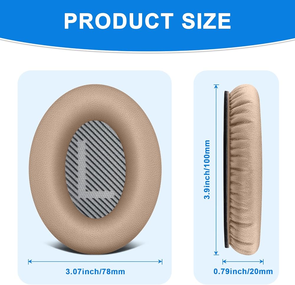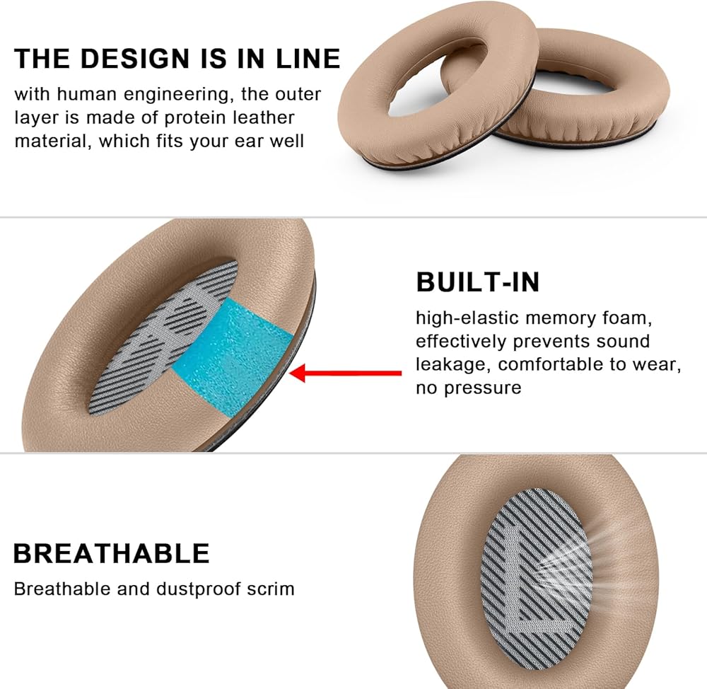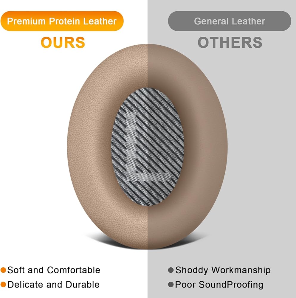 Meliya Replacement Earpads for Bose QuietComfort 35 & Quiet Comfort 35 II Headphones, Ear Pads Cushions with Soft Protein Leather and Noise Isolation Foam for Bose QC 35ii/35/25/15 QC2/Ae2 (Khaki)