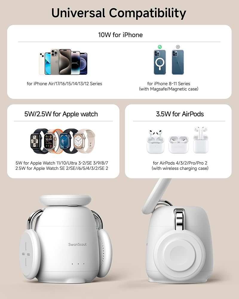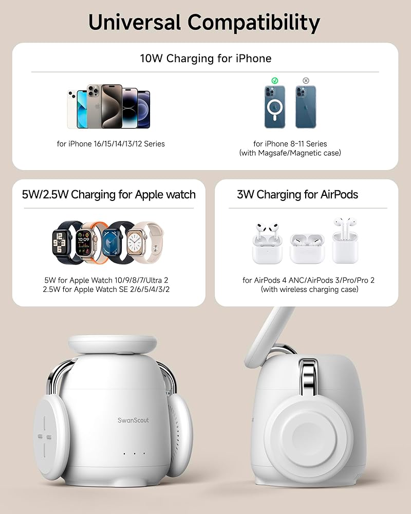 Designed for Apple Users: Compatible with iPhone 12-16 models (also suitable for other wireless charging phones with magnetic cases), for Apple Watch Series 2-10/SE 2/SE/Ultra 2/Ultra, for AirPods 4(ANC)/3/Pro 2/Pro with wireless charging capability